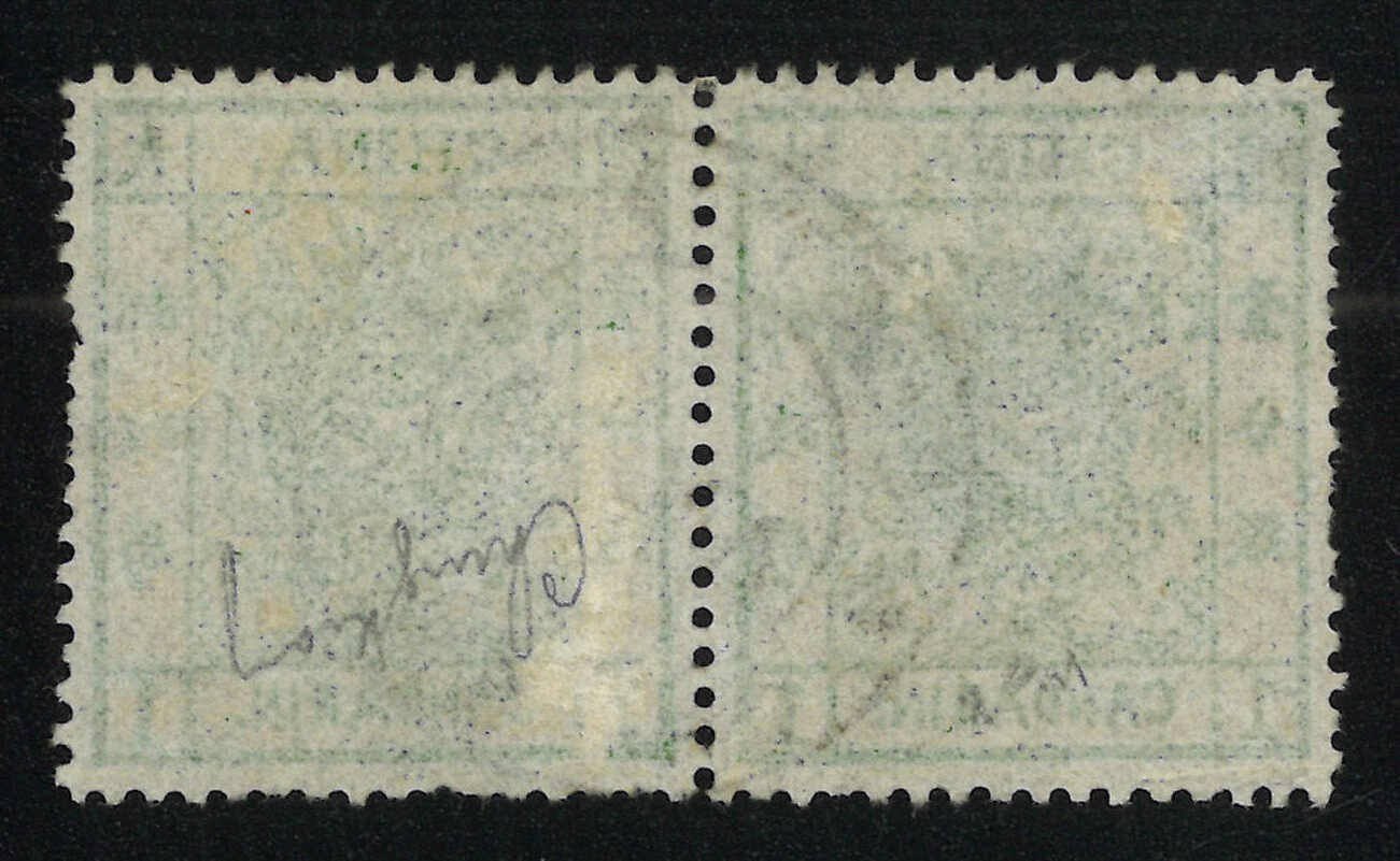 1878年1分銀深綠色橫雙連,銷鎮江海關紅色日戳。(Image 1) (Image 2)
