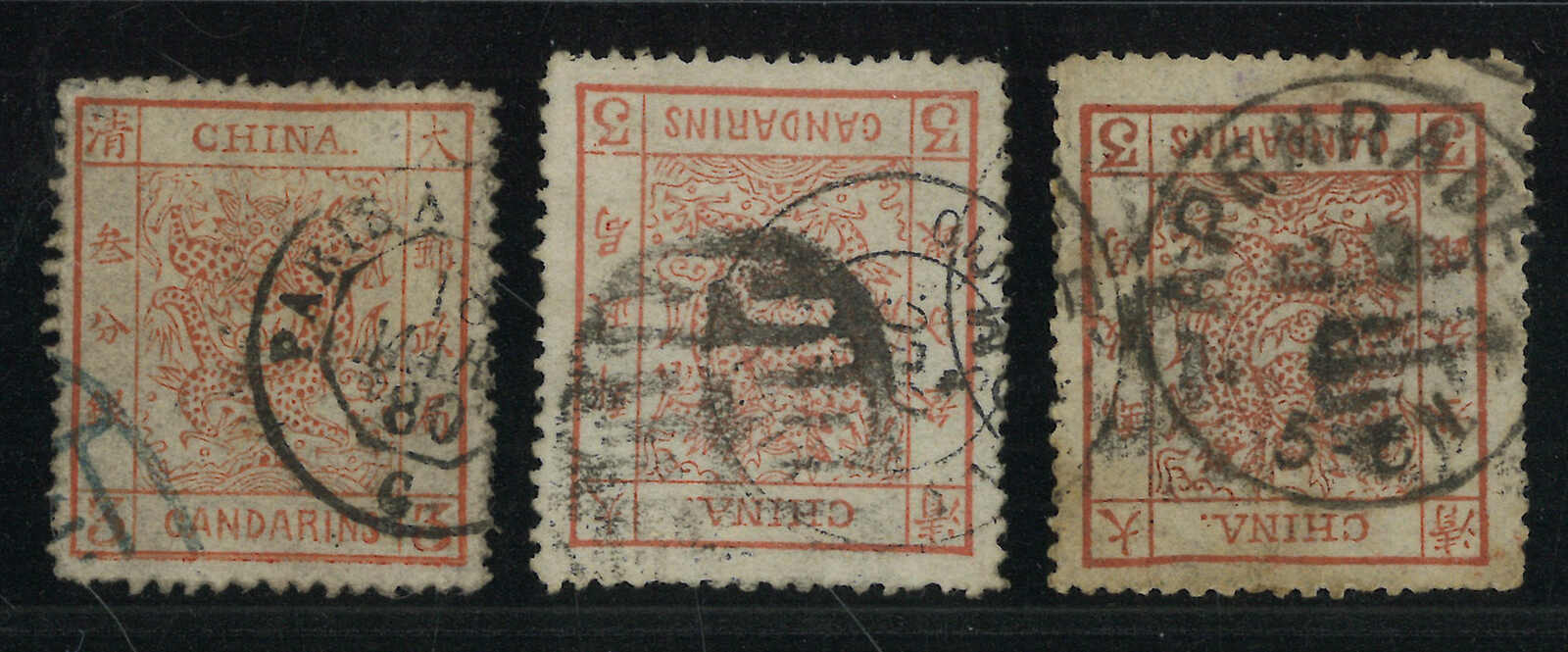 37 o image1878 thin paper 3ca red brown, deep color, centrally cancelled by faint but still recognizable “Customs/Shanghai” dater.