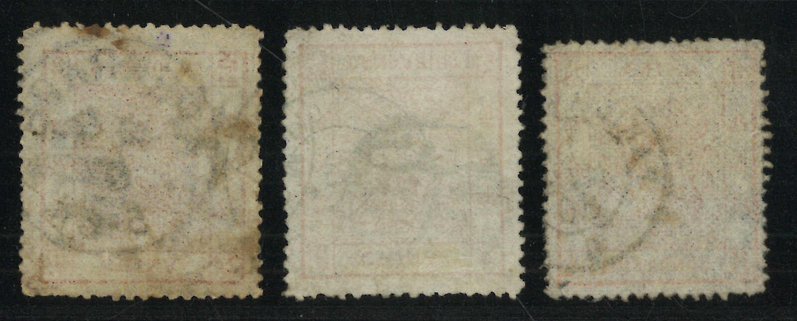 1878薄紙及1882年寬邊3分銀3枚,2枚銷法國日戳,1枚銷德國日戳。(Image 1) (Image 2)
