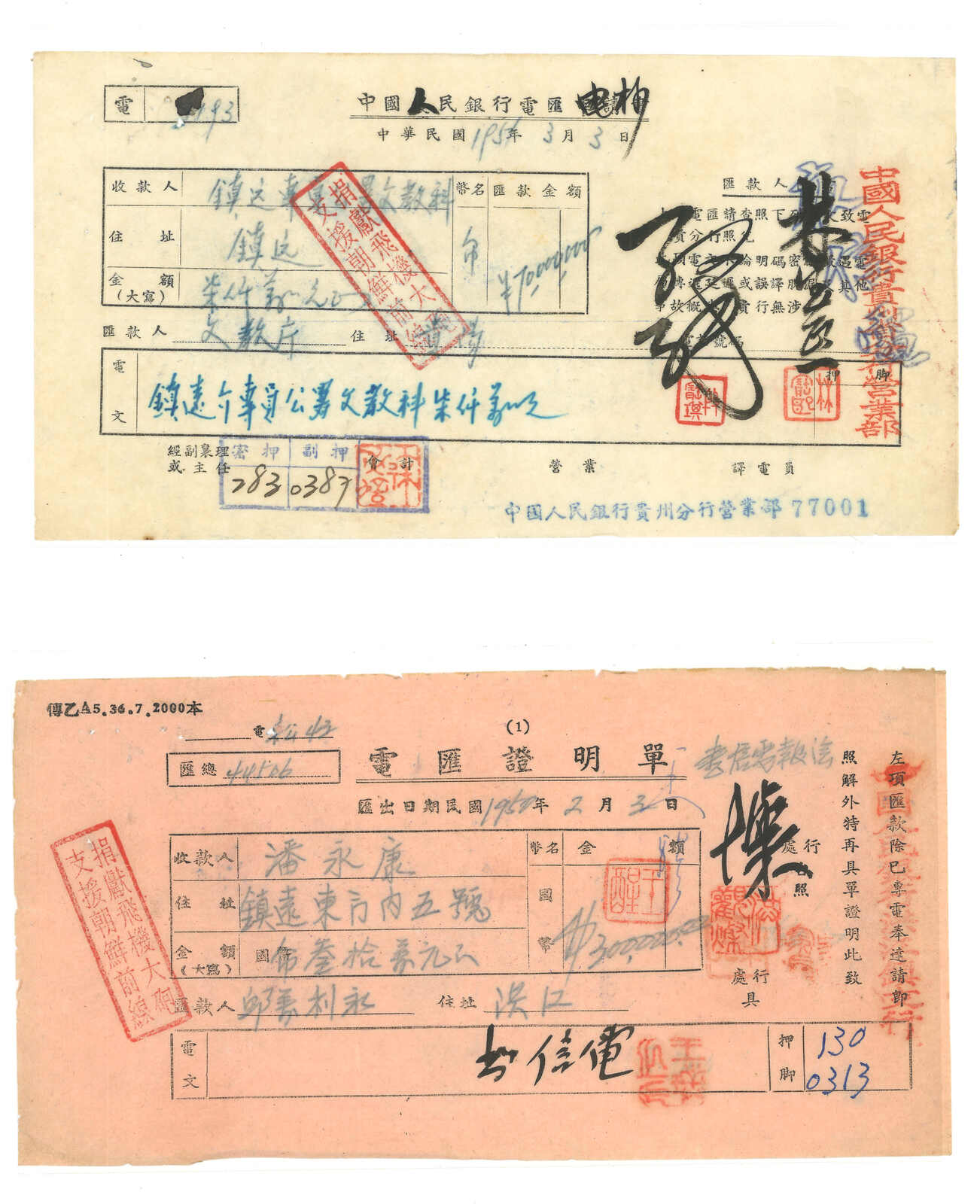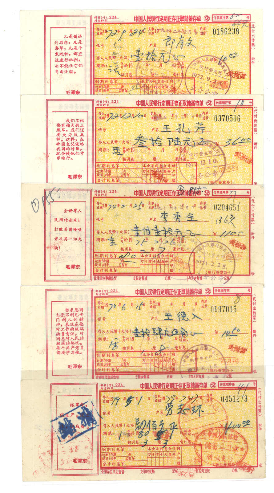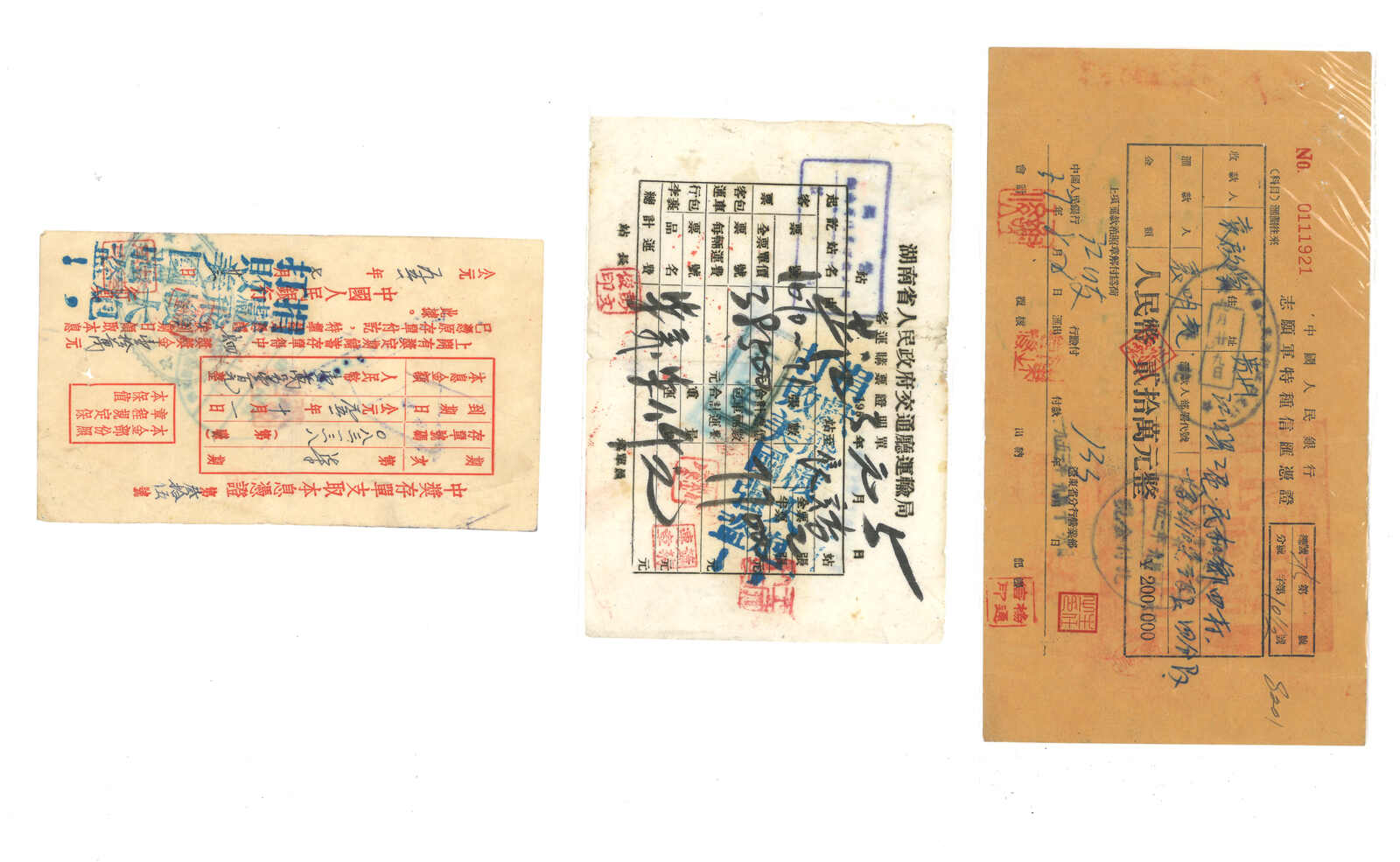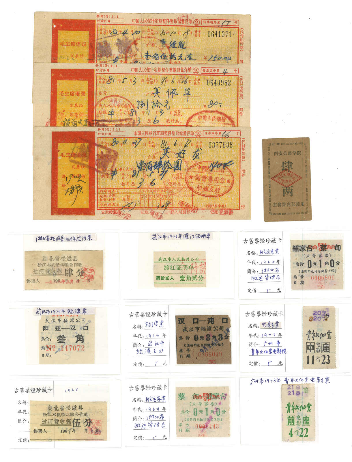 一冊新中國匯款單、存款單、渡輪票及電影票。部分蓋有“抗美援朝”戳記或帶有毛語錄。數量數以百計,請預覽。(Image 1)