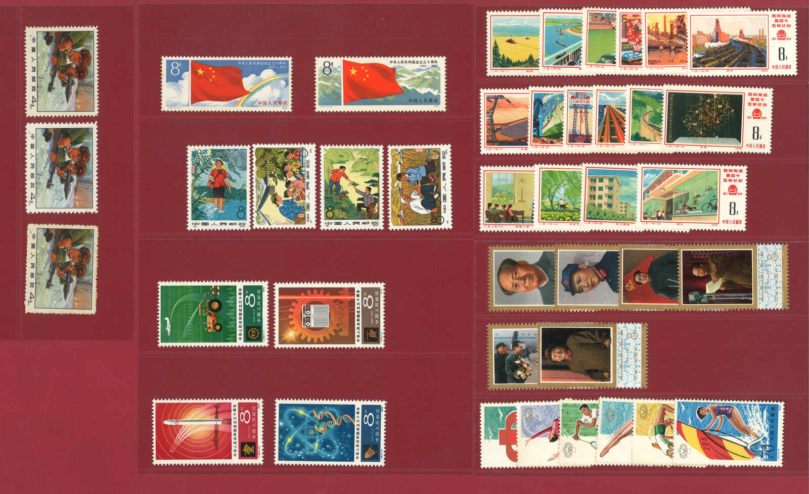 1974 J3 25th Anniv. of Founding of PRC (2nd series) in 5 multiples,in total of 12 sets. MNH with orignal gum, Light toning.
