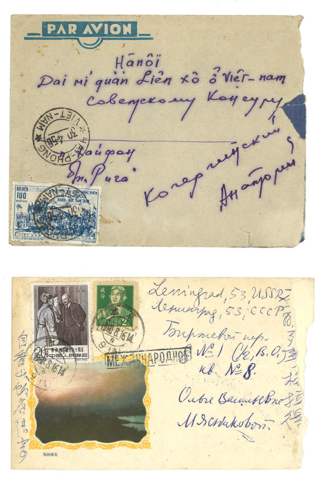 1960年代一組六件中國寄蘇聯封,貼紀44十月革命、紀77列寧及、特44菊花及其他普票,銷北京、南京等地日戳。(Image 1)
