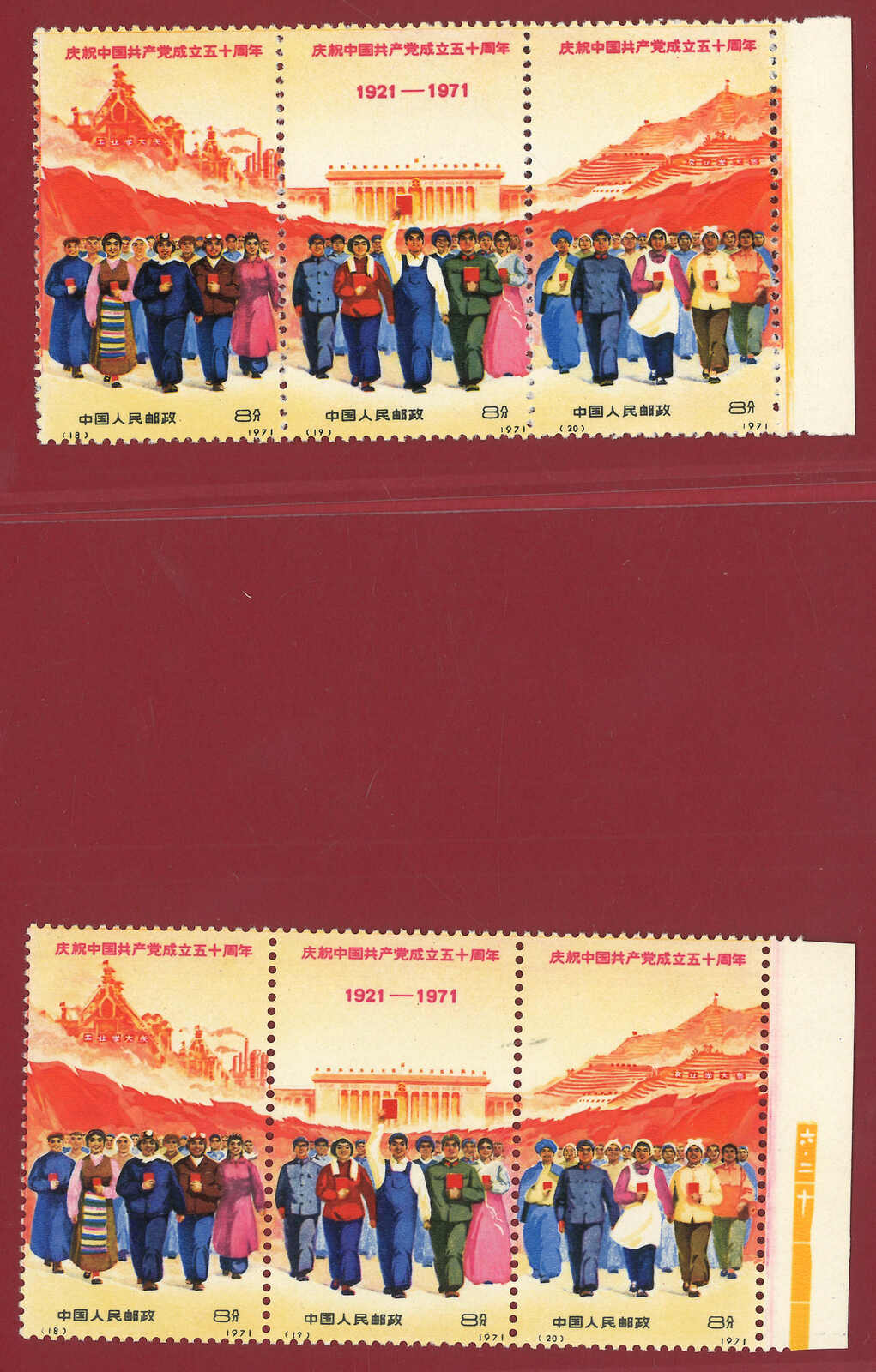 1971 N18-20 Chinese Communist Party strip x2, with right margin. Both MNH with original gum.