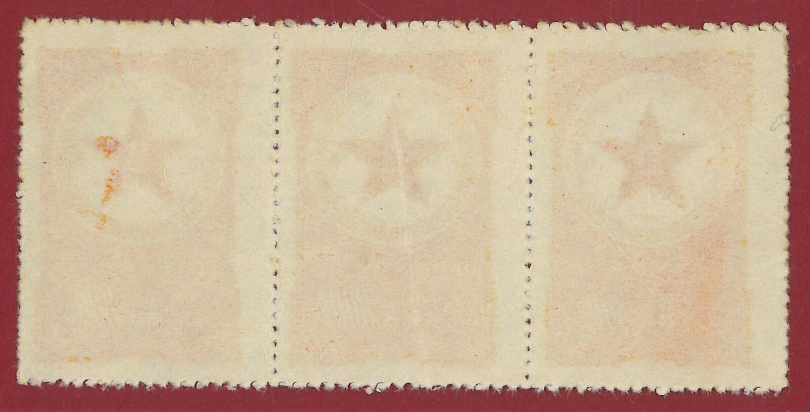 1953 M1 Yellow Military Stamp in horizontal strip of 3. The middle stamp folded. MNH.