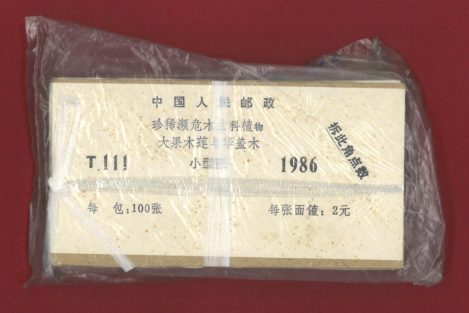 1986年T111M珍稀濒臨危木蘭植物小型張原封100枚。(Image 1)