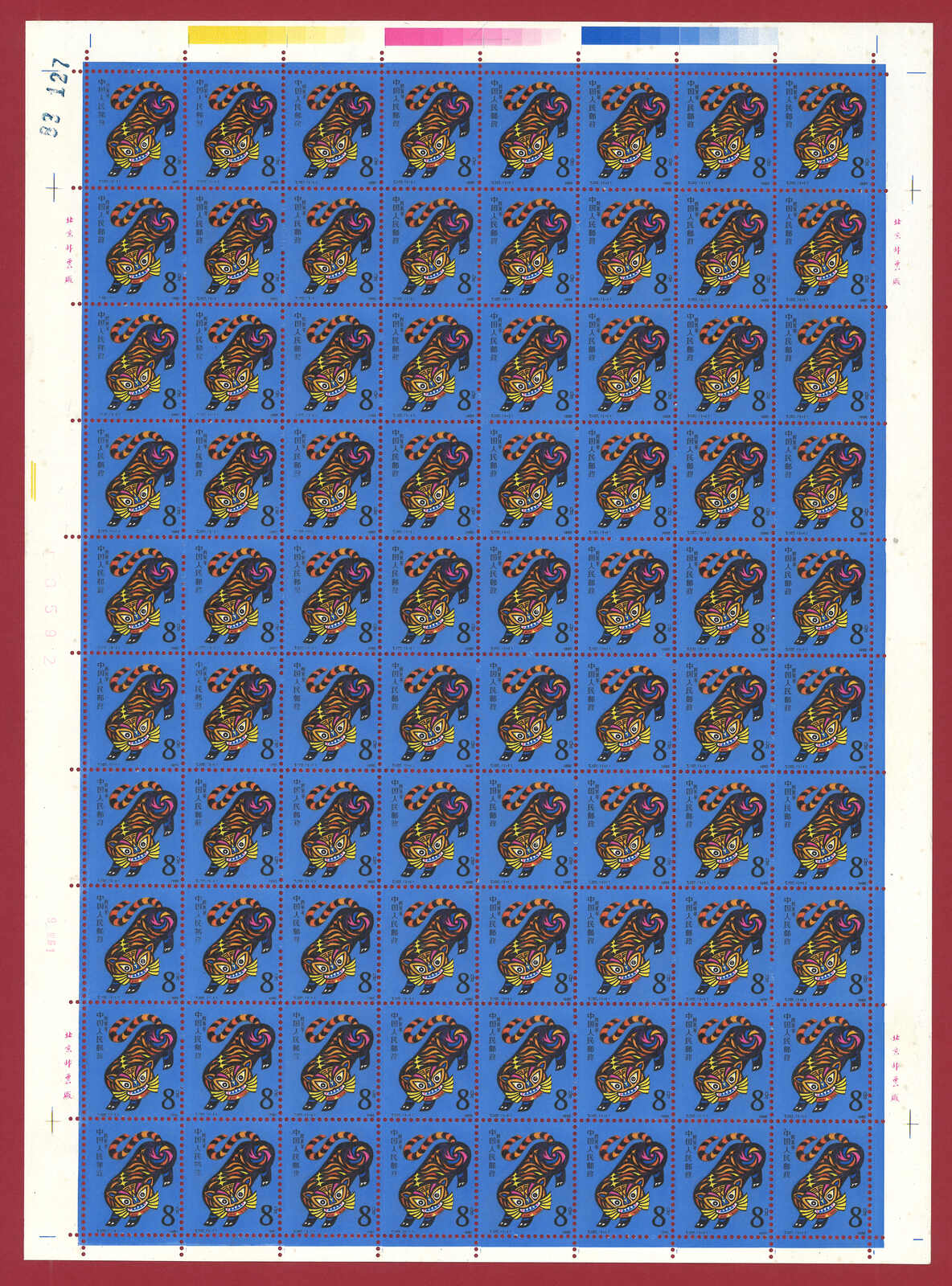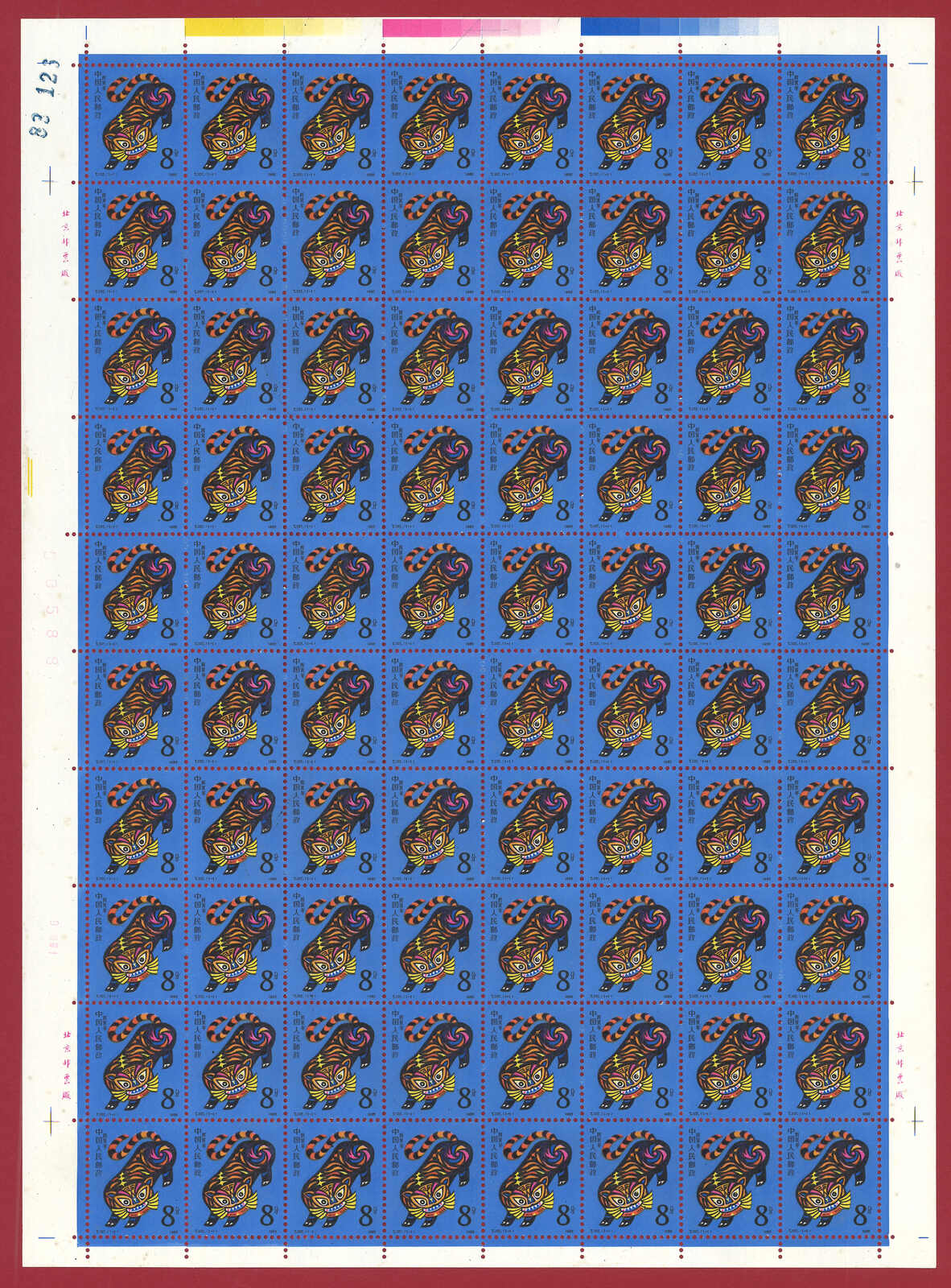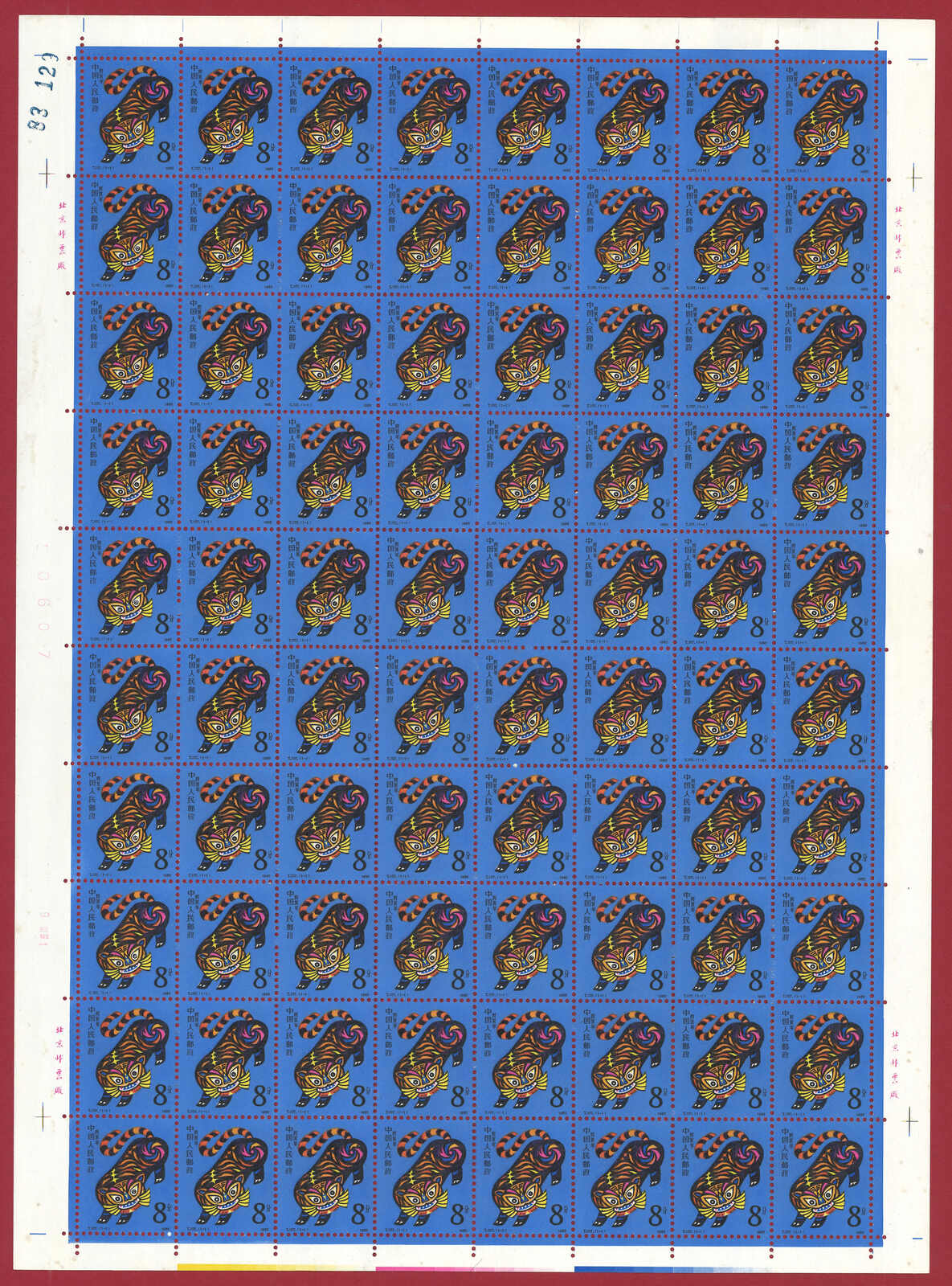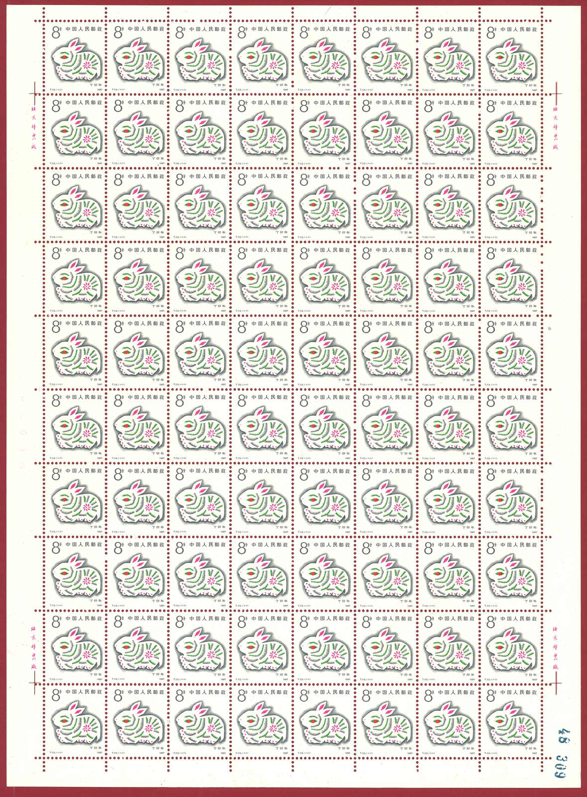 1986年T107虎年及1987年T112兔年版票各10版新,共1600枚。(Image 1)