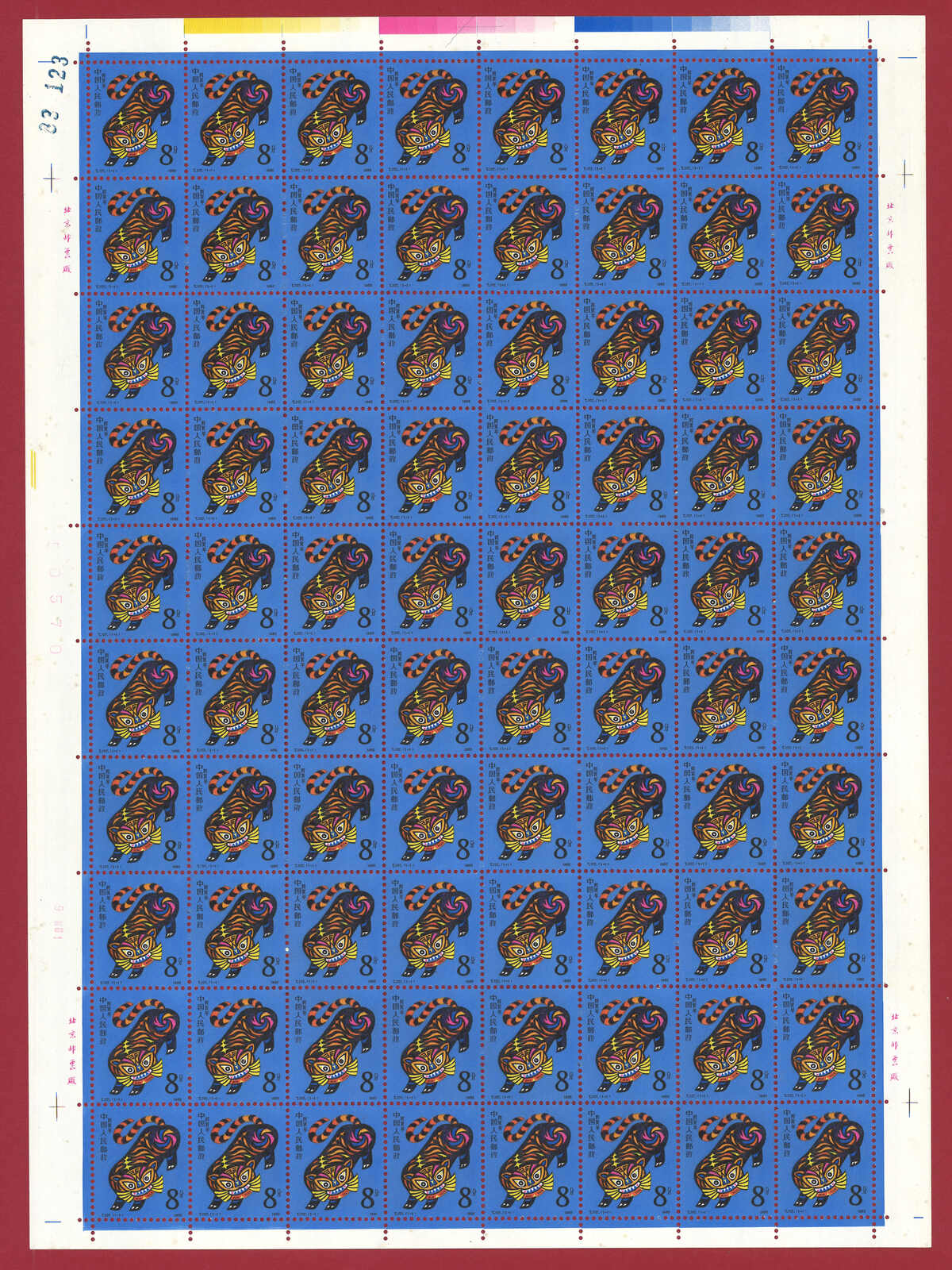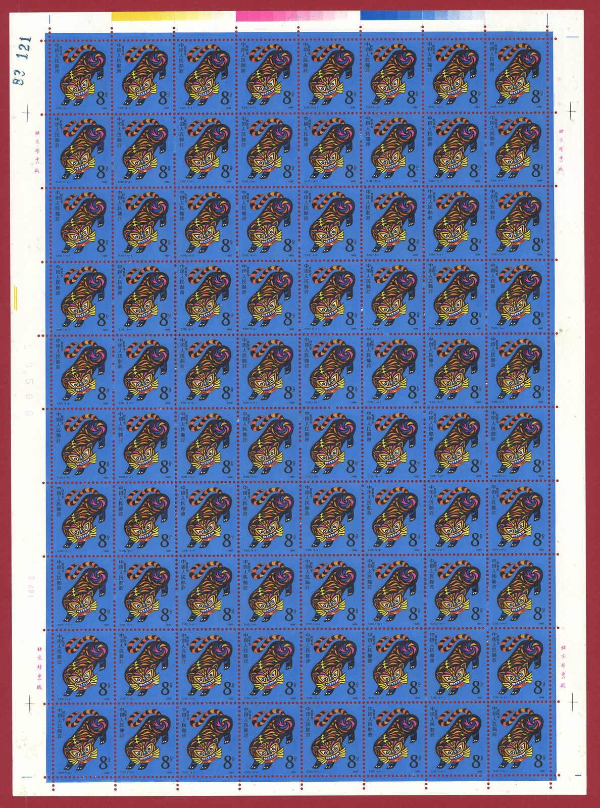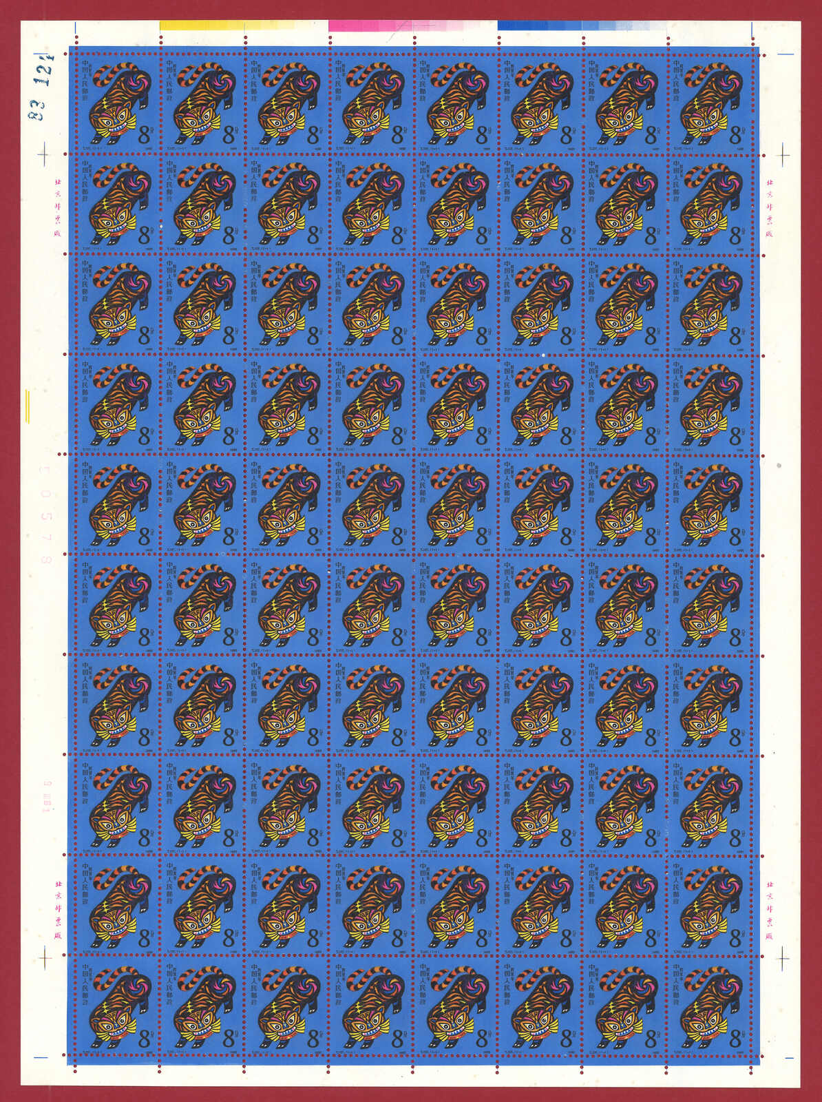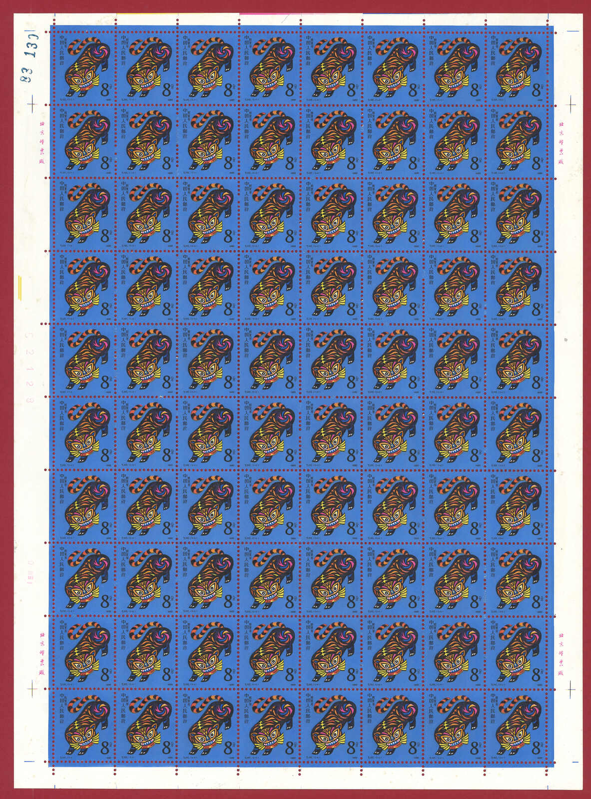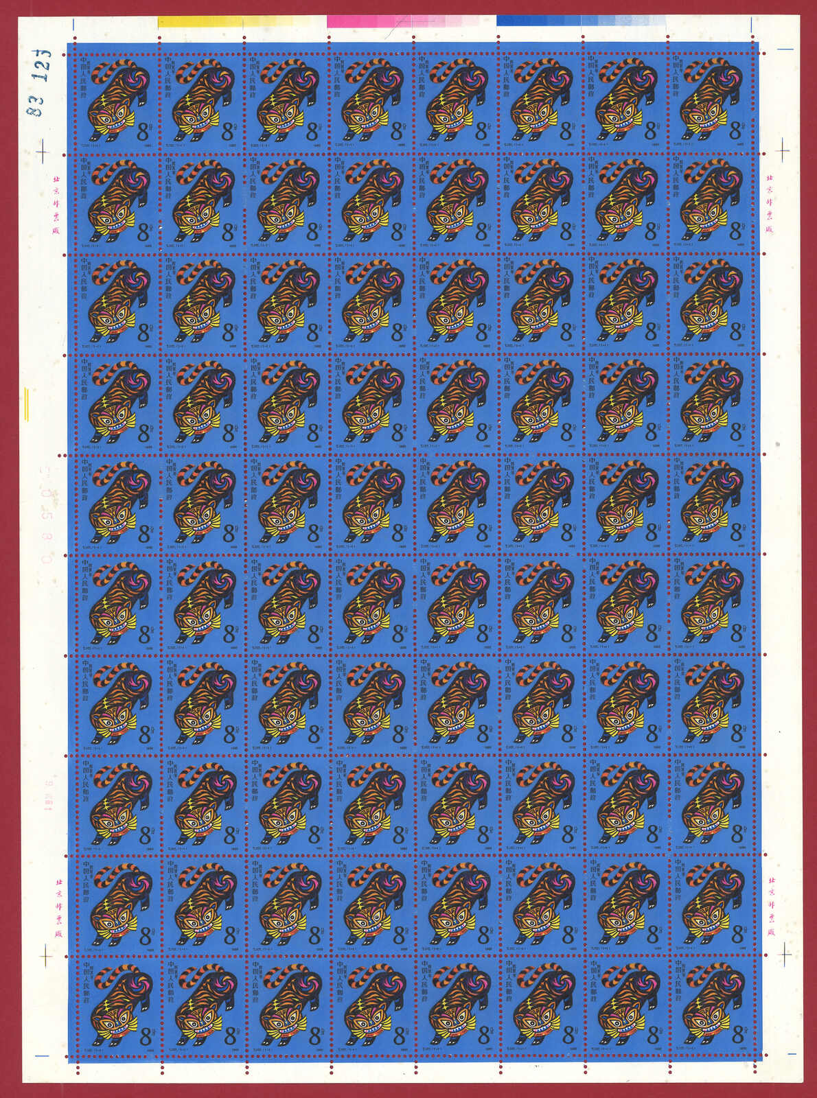 1986年T107虎年及1987年T112兔年版票各10版新,共1600枚。(Image 1)