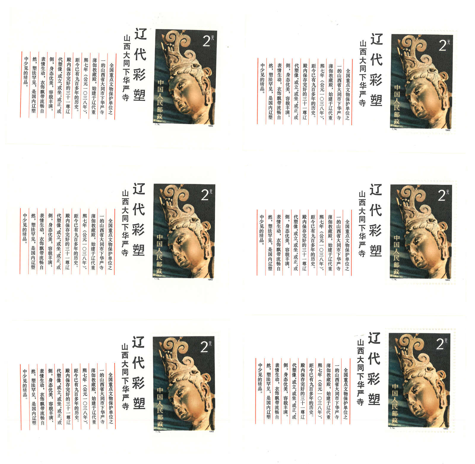 1982 T74M Colour Sculptures of Liao Dynasty MS x6. MNH with original gum.