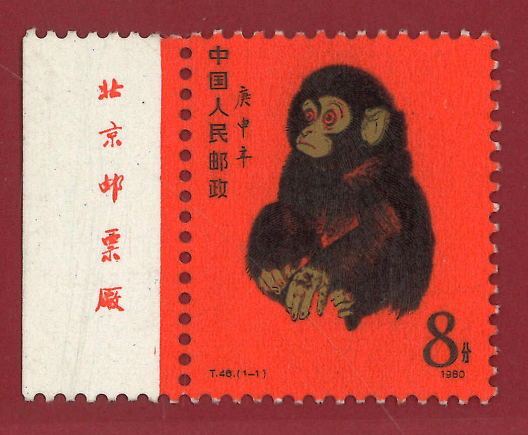 1980 T46 Year of Monkey with left imprint margin, MNH without gum.