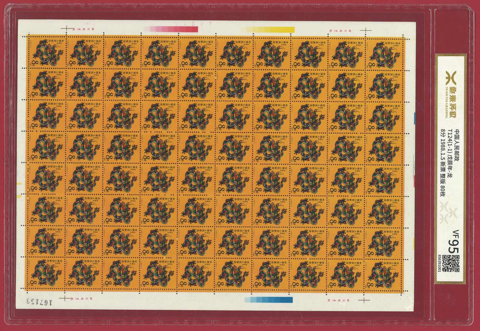 1988年T124龍年版票80枚新,評源泰VF95分。(Image 1) (Image 2)