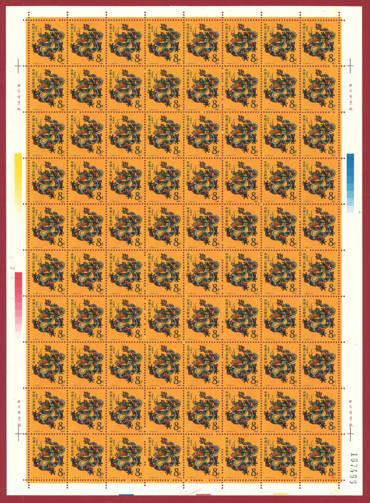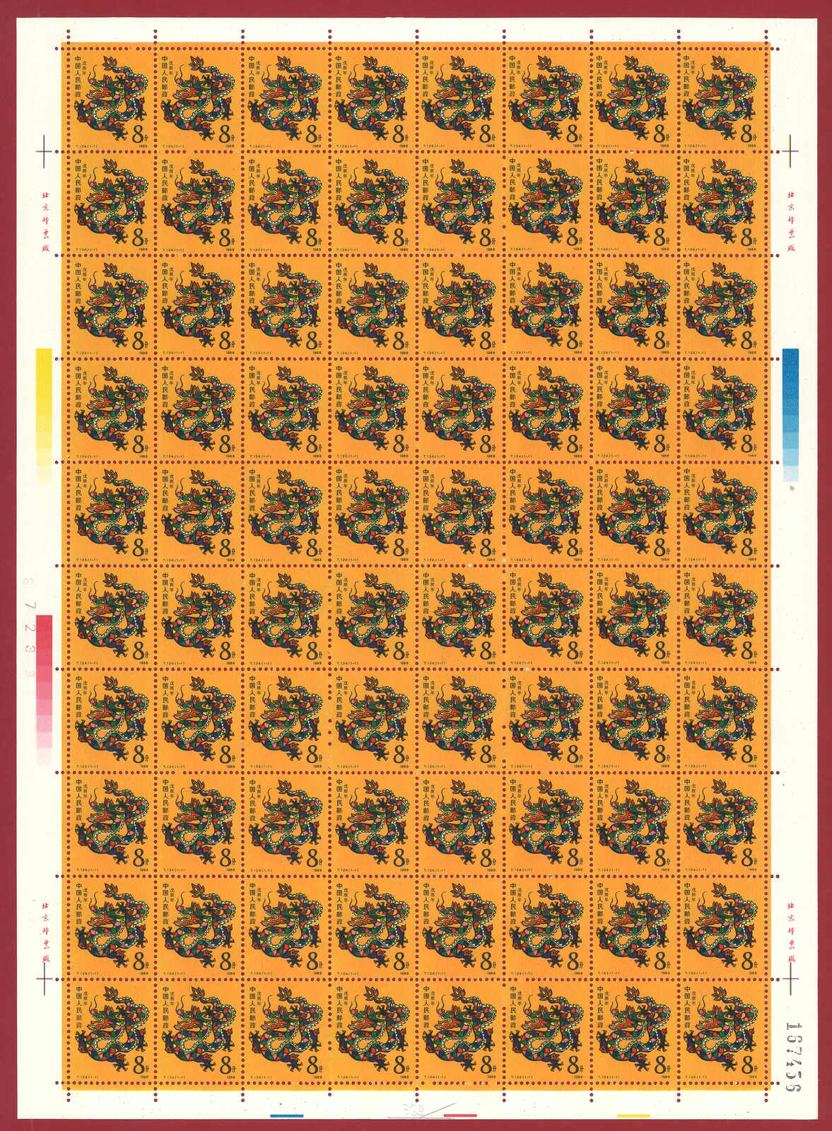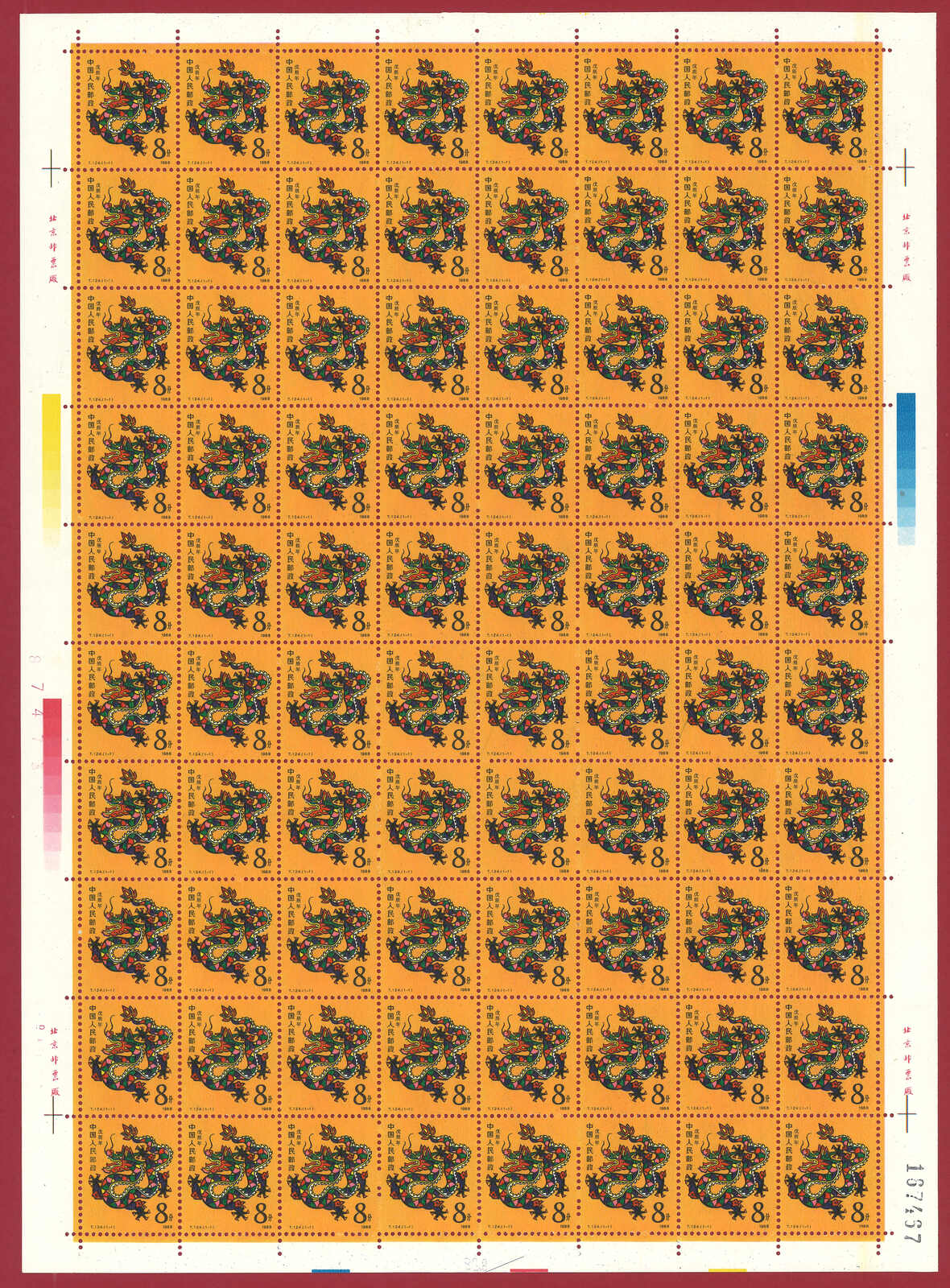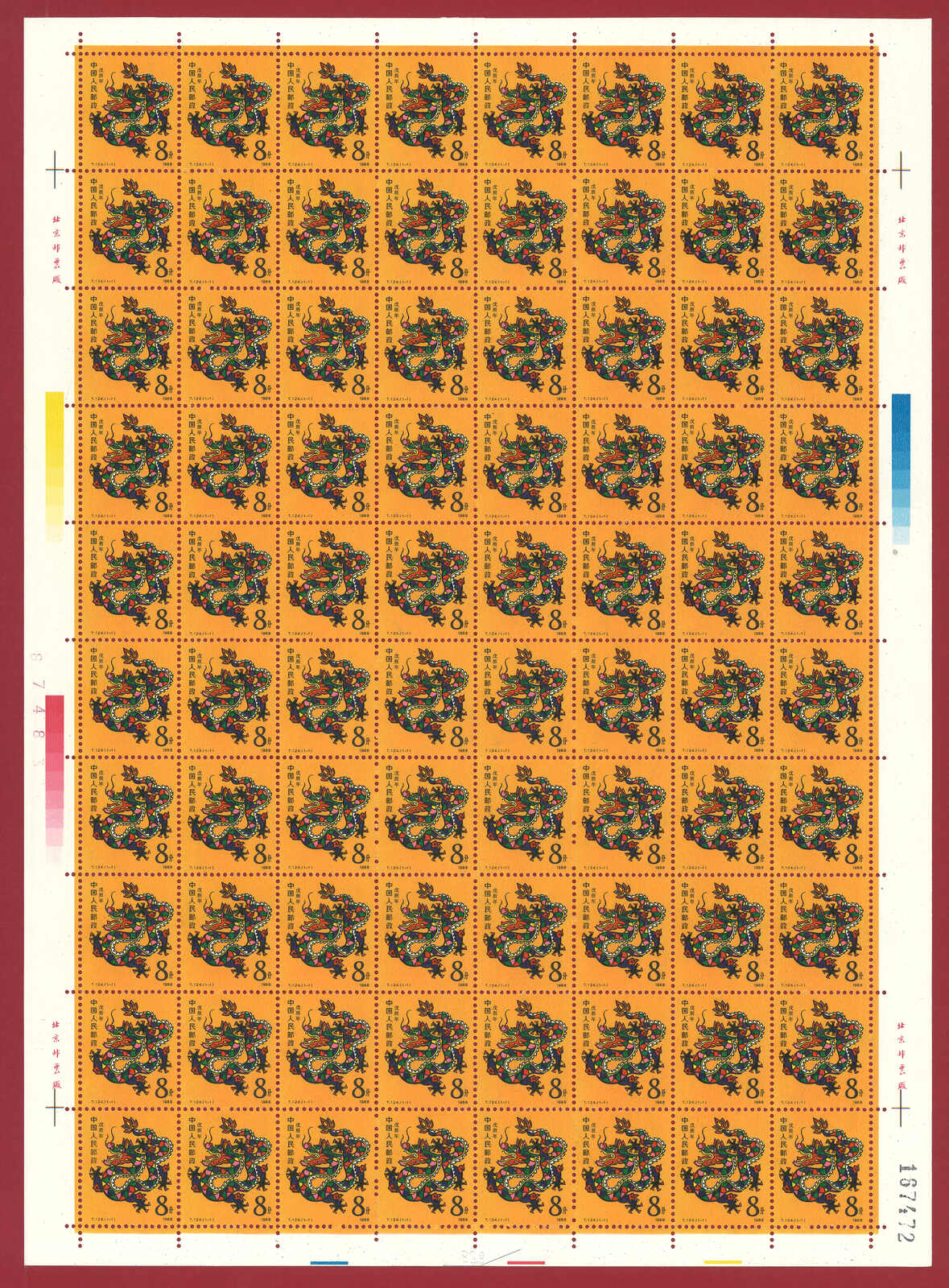 724 **/bof image1988 T124 Year of the Dragon in complete sheet of 80. Very Fine. Yuan Tai 95.