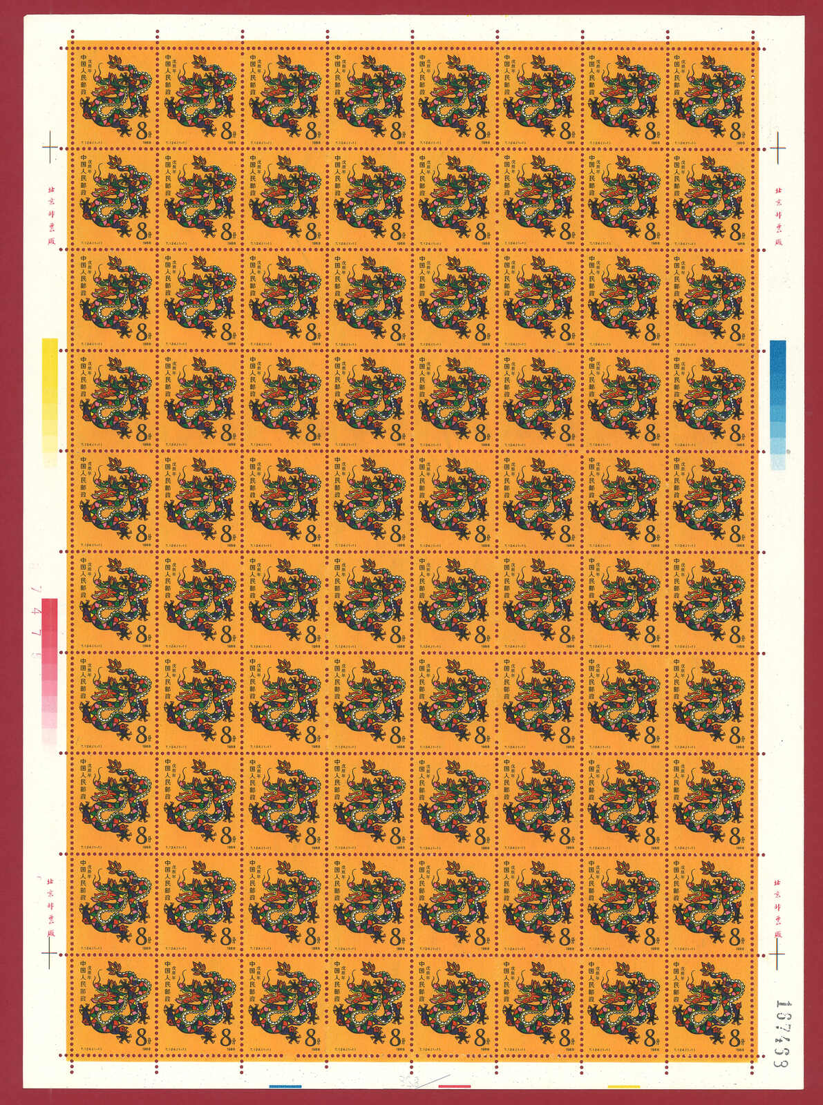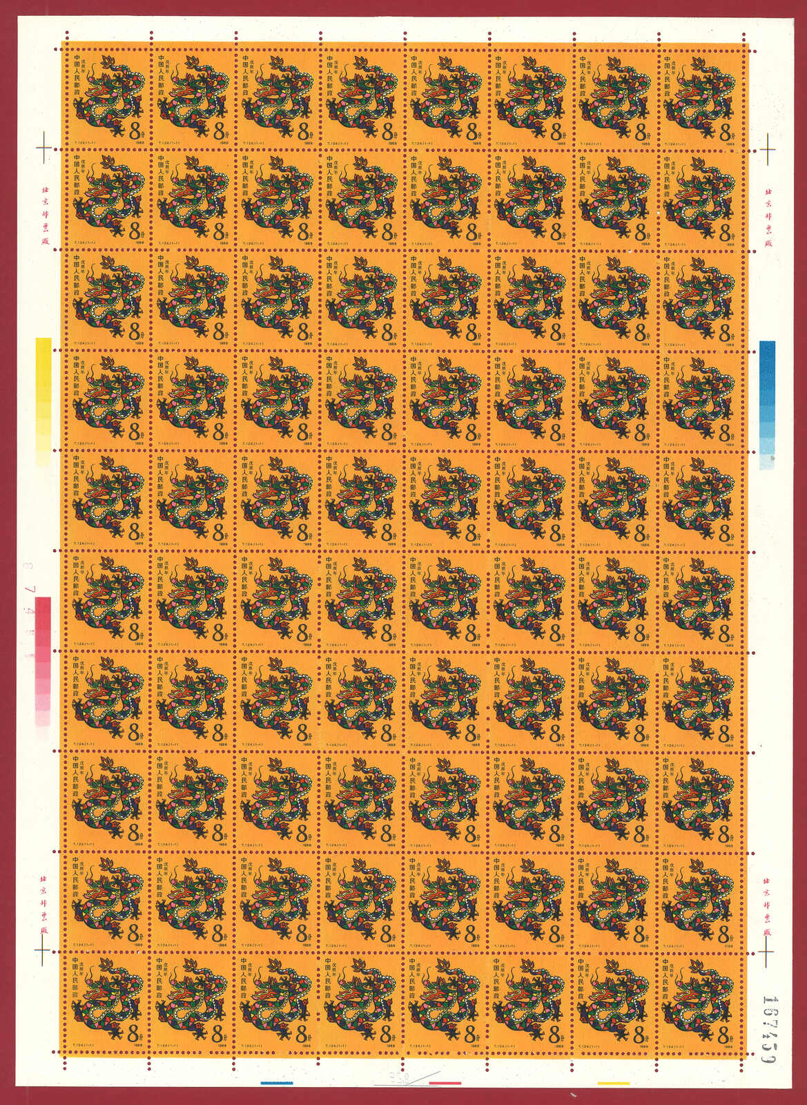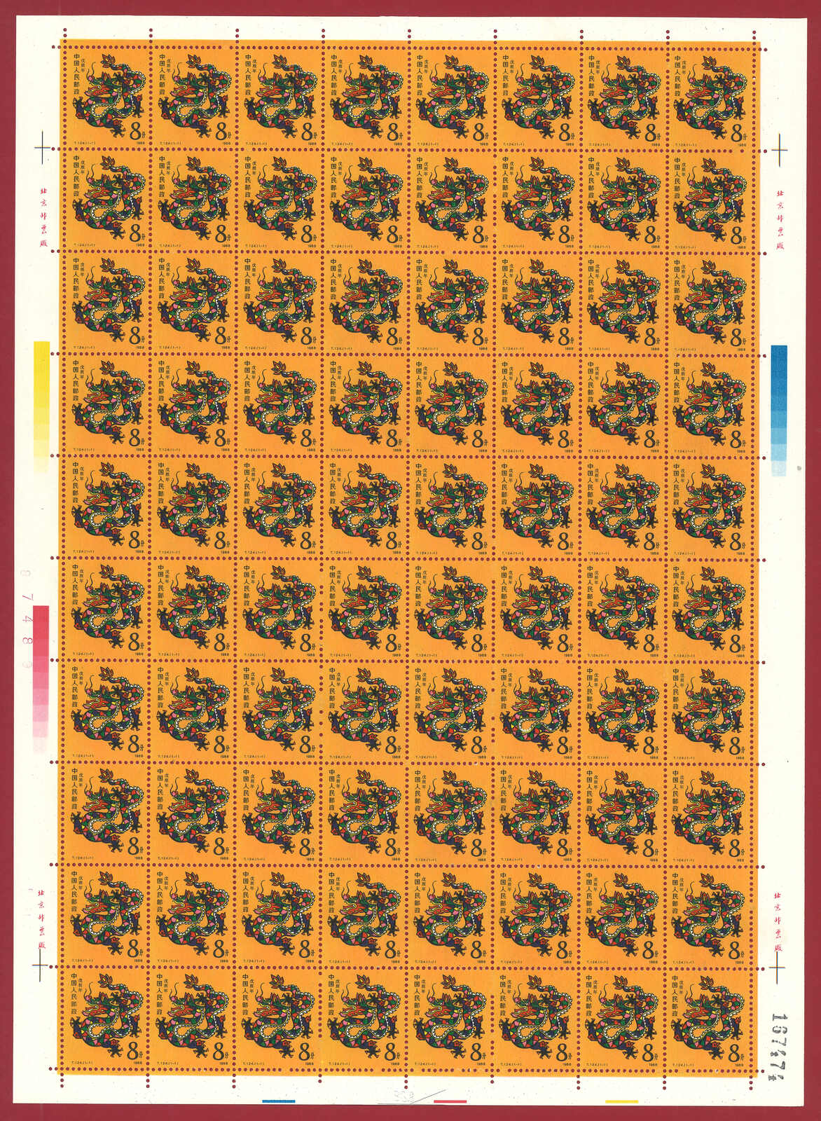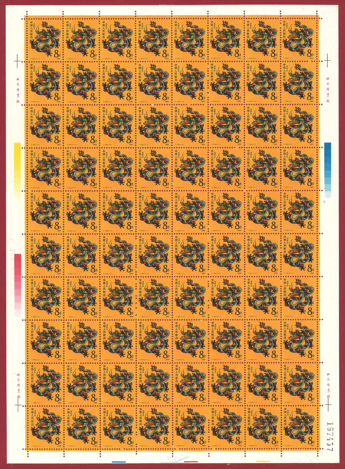 724 **/bof image1988 T124 Year of the Dragon in complete sheet of 80. Very Fine. Yuan Tai 95.