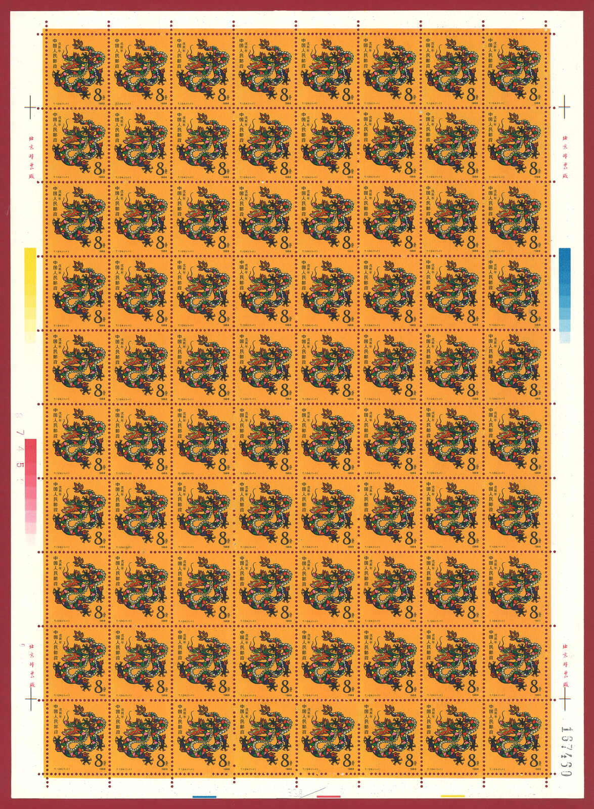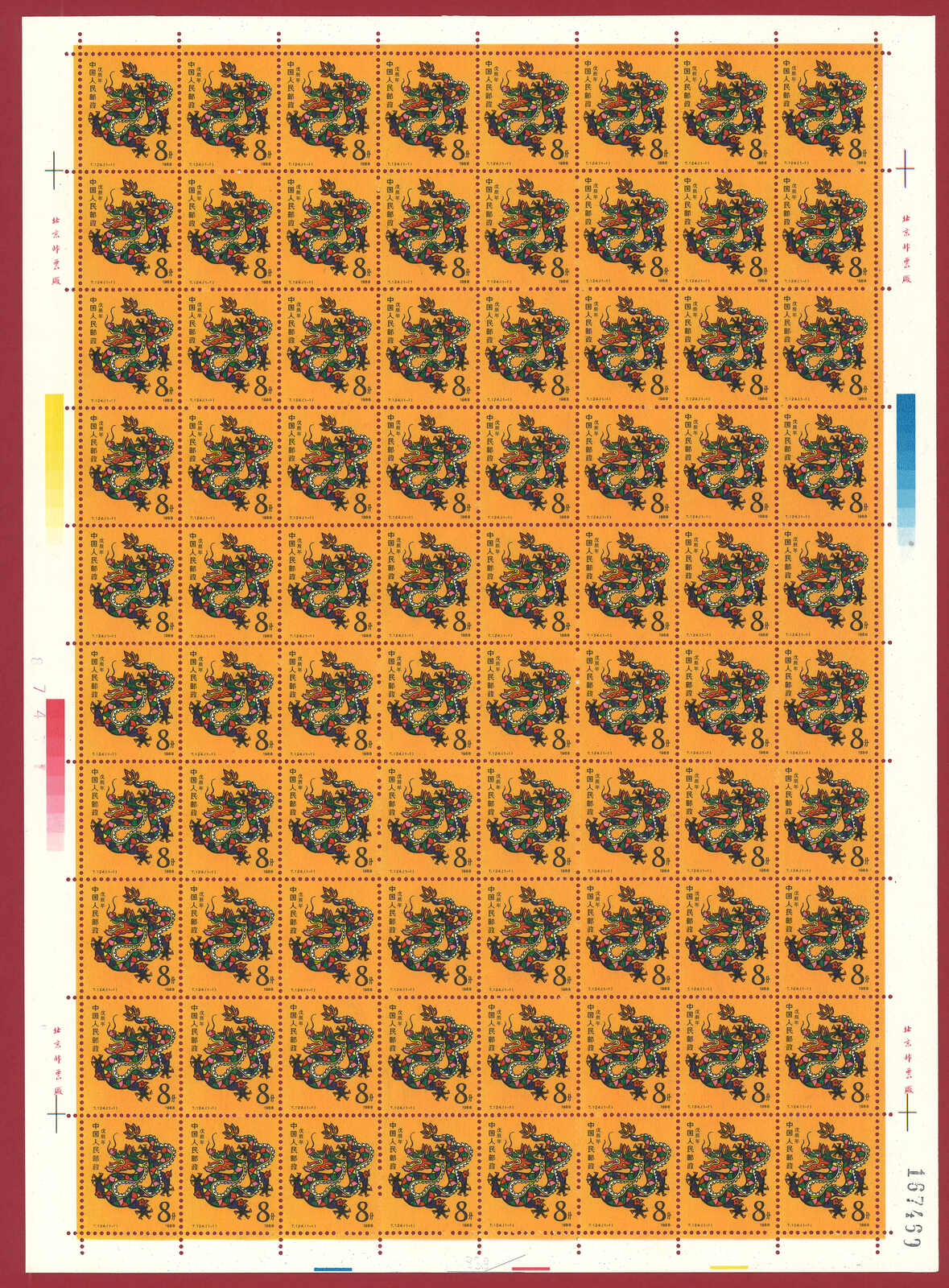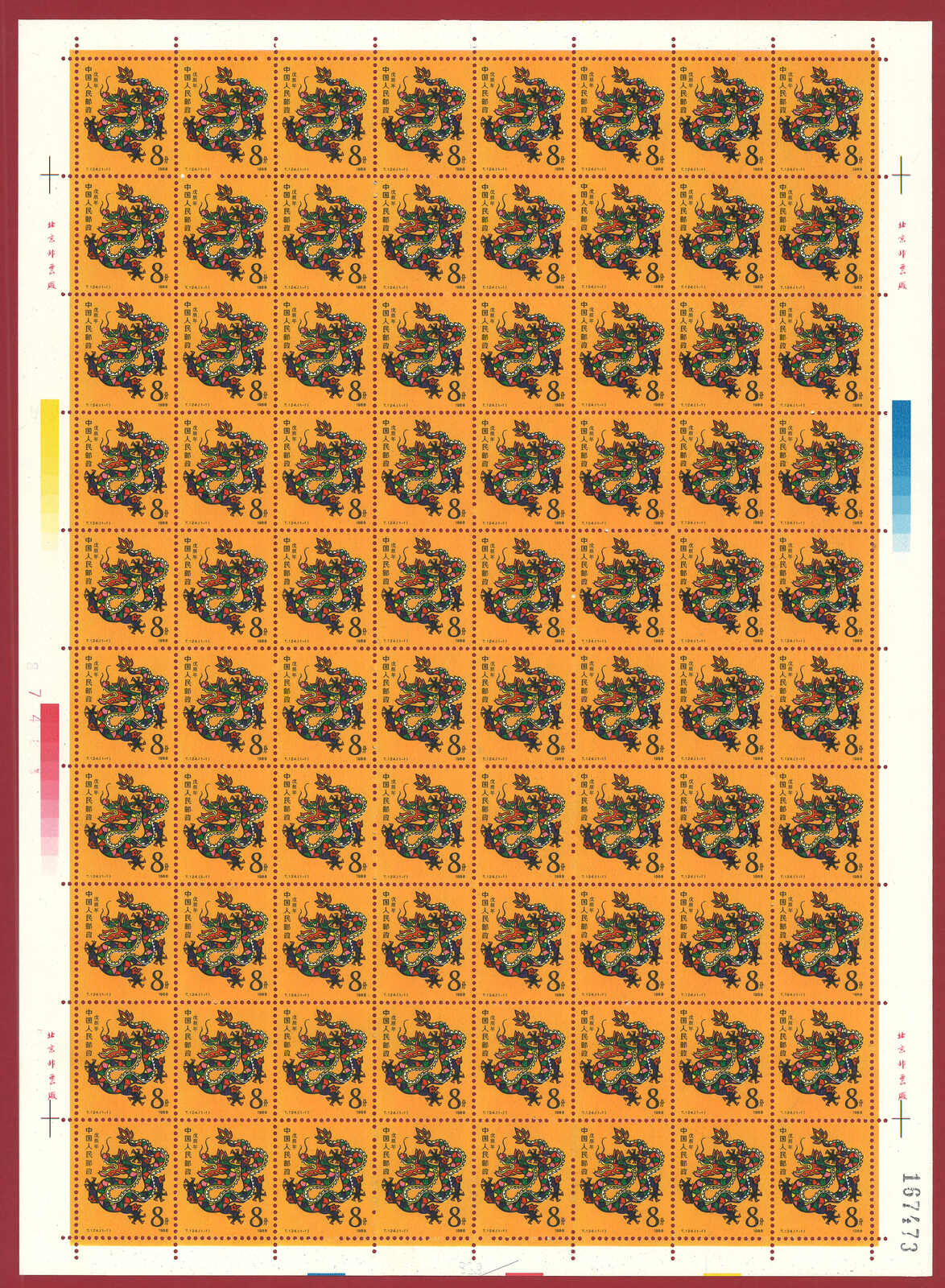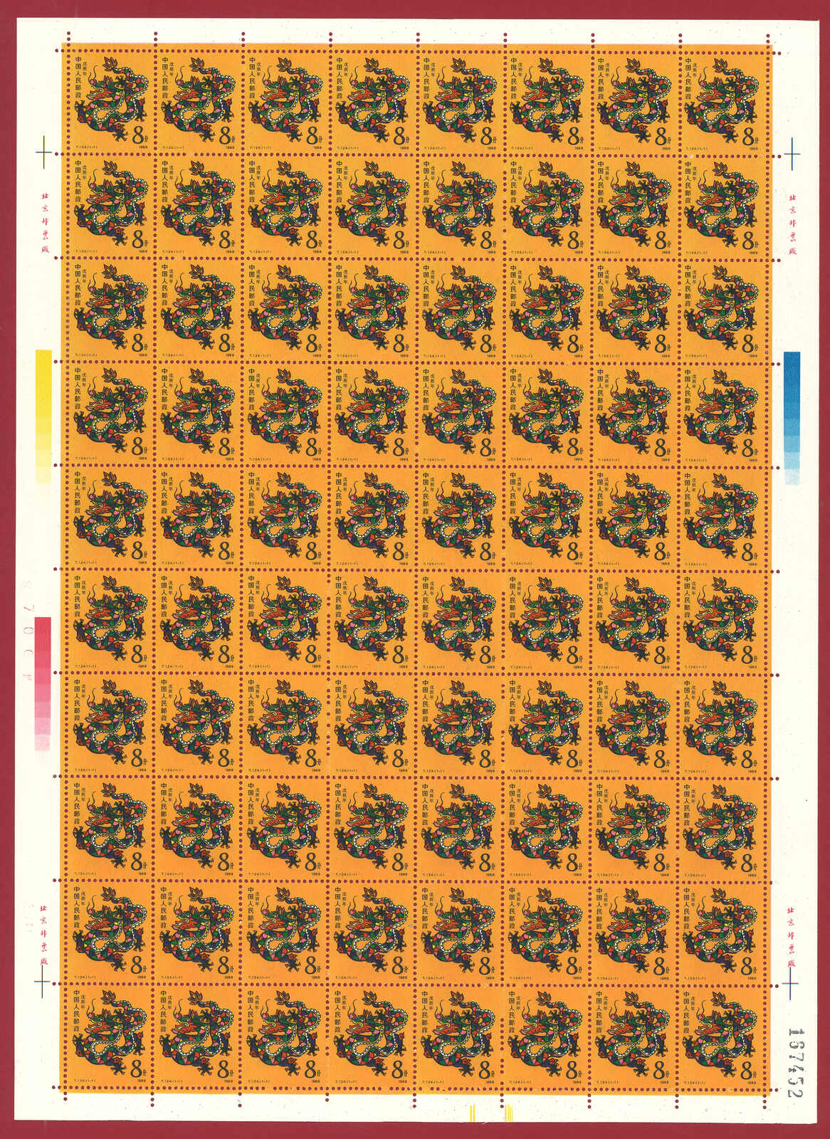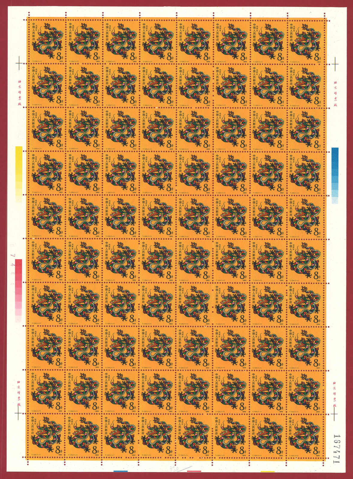 724 **/bof image1988 T124 Year of the Dragon in complete sheet of 80. Very Fine. Yuan Tai 95.