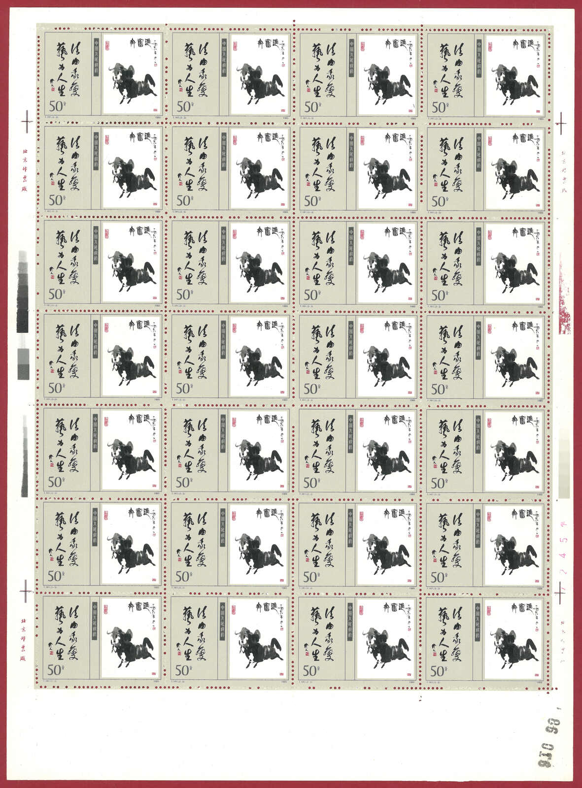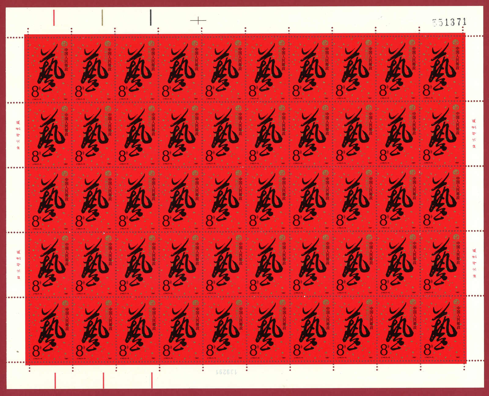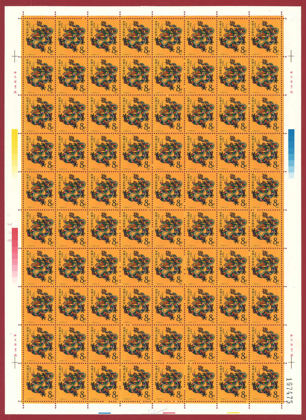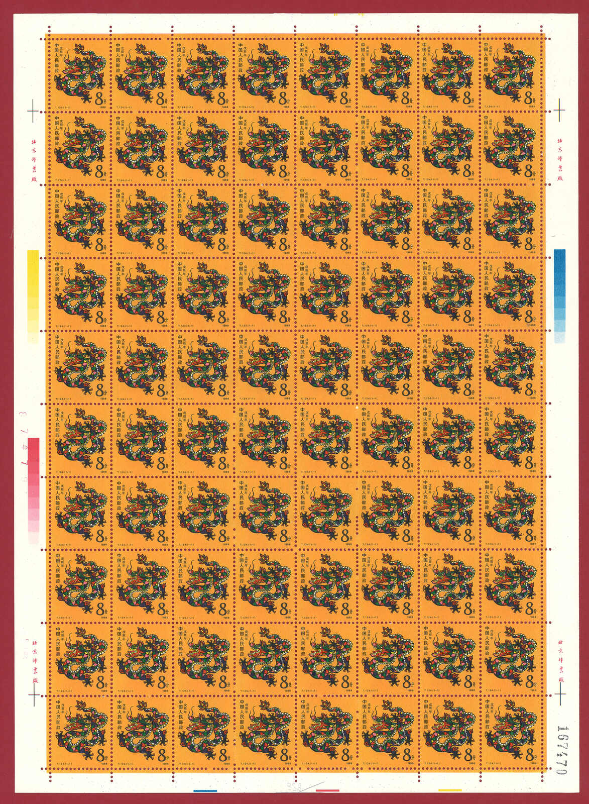 724 **/bof image1988 T124 Year of the Dragon in complete sheet of 80. Very Fine. Yuan Tai 95.