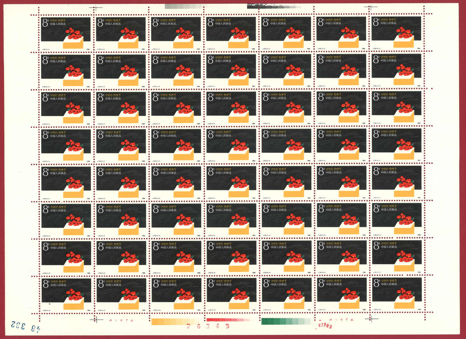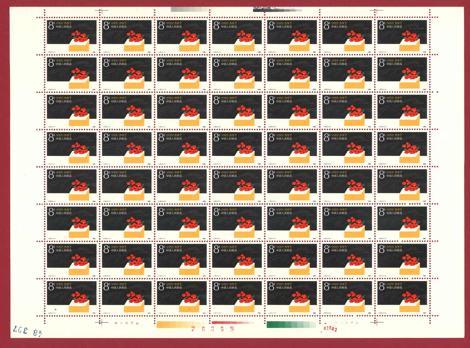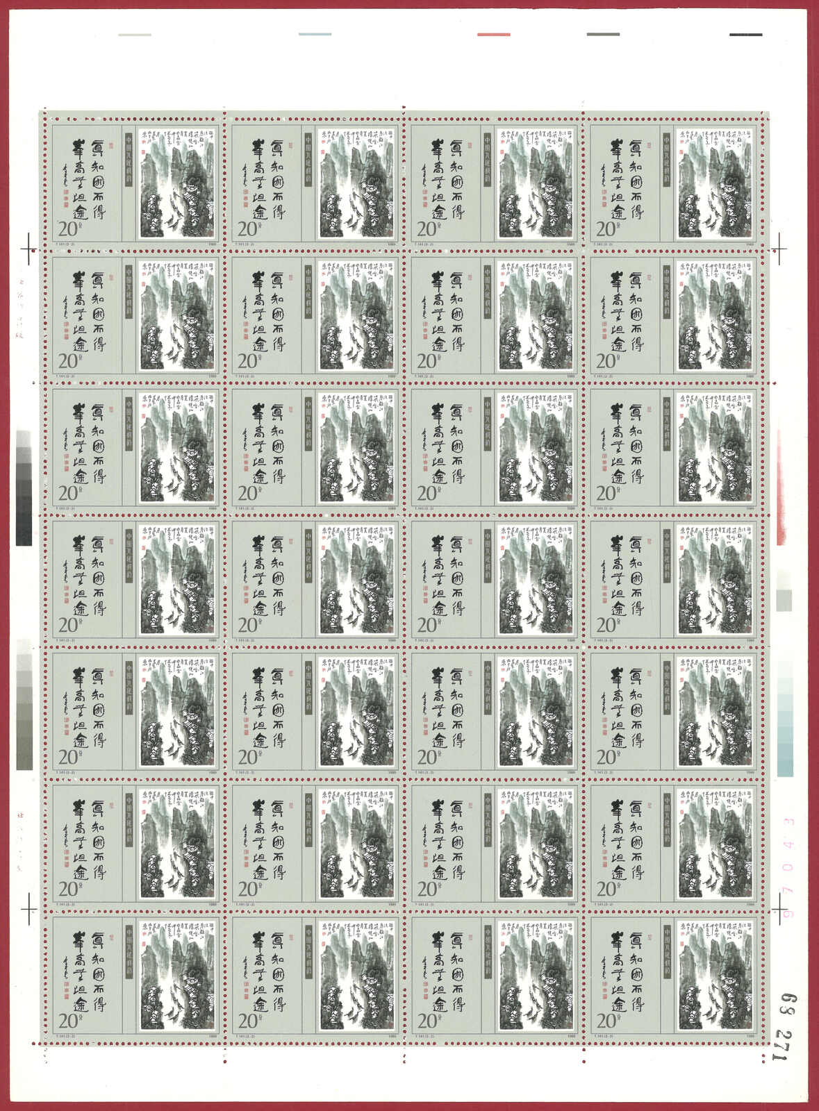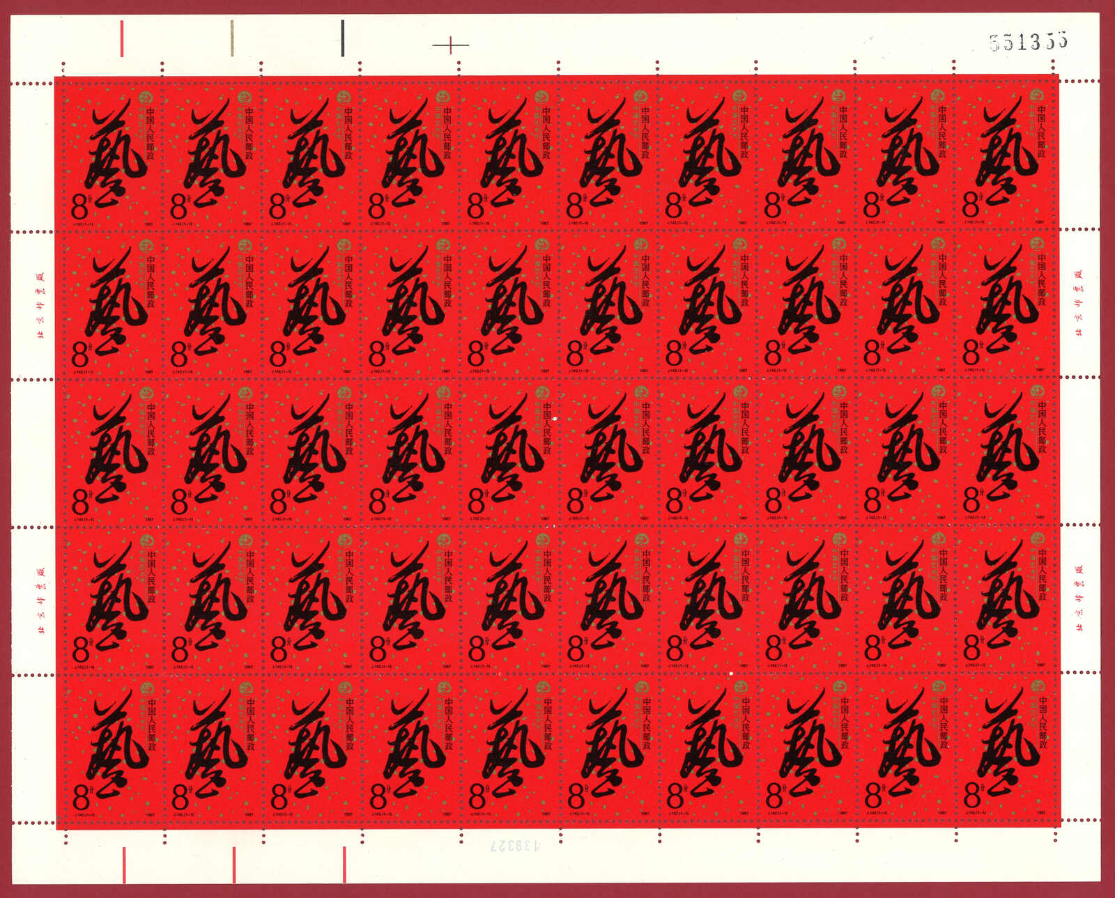 724 **/bof image1988 T124 Year of the Dragon in complete sheet of 80. Very Fine. Yuan Tai 95.