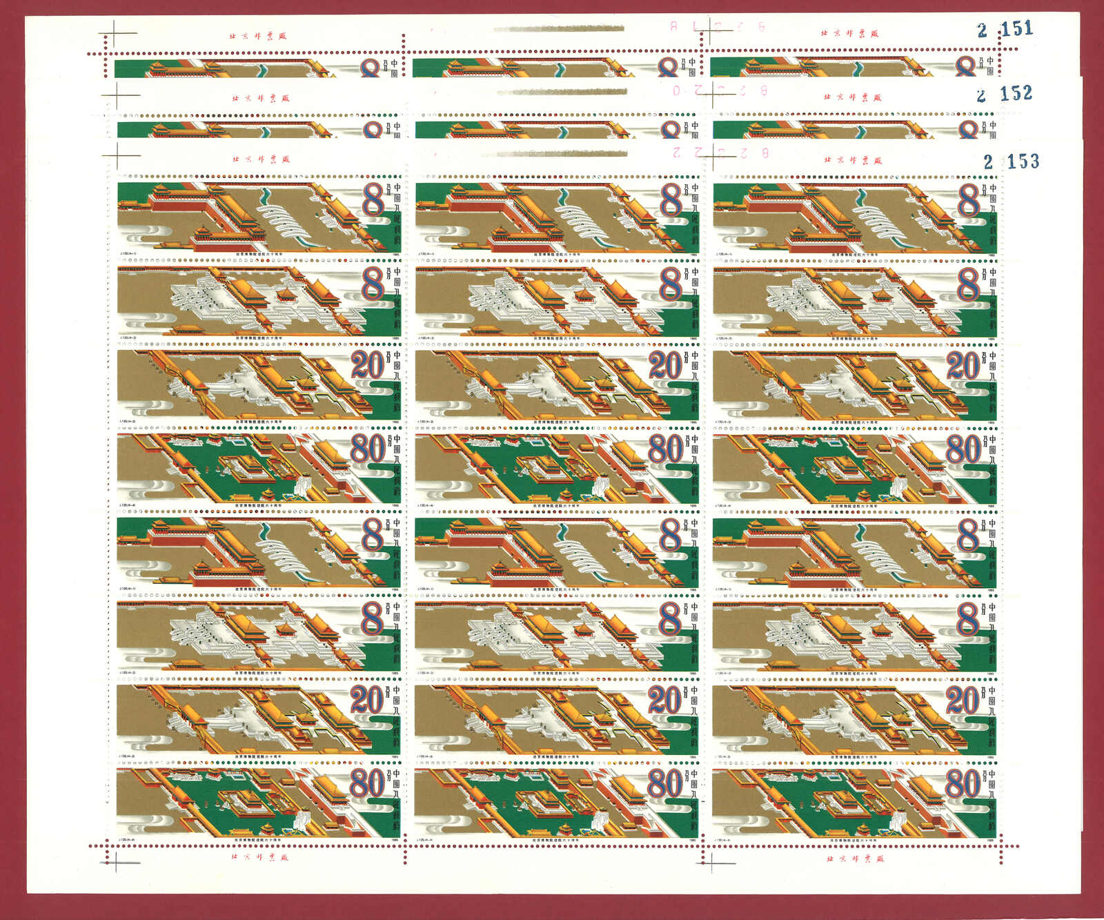 733 ** image1980s a collection of J&T series issue complete sheets, including T92 (in total of 500 sets), J120 (in total of 174 sets) and J131 (in total of 2520 stamps, with consecutive plate numbers). All MNH.