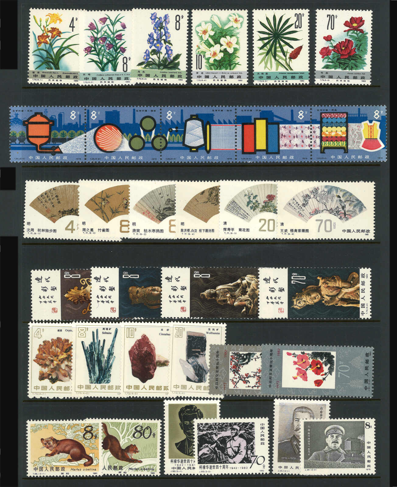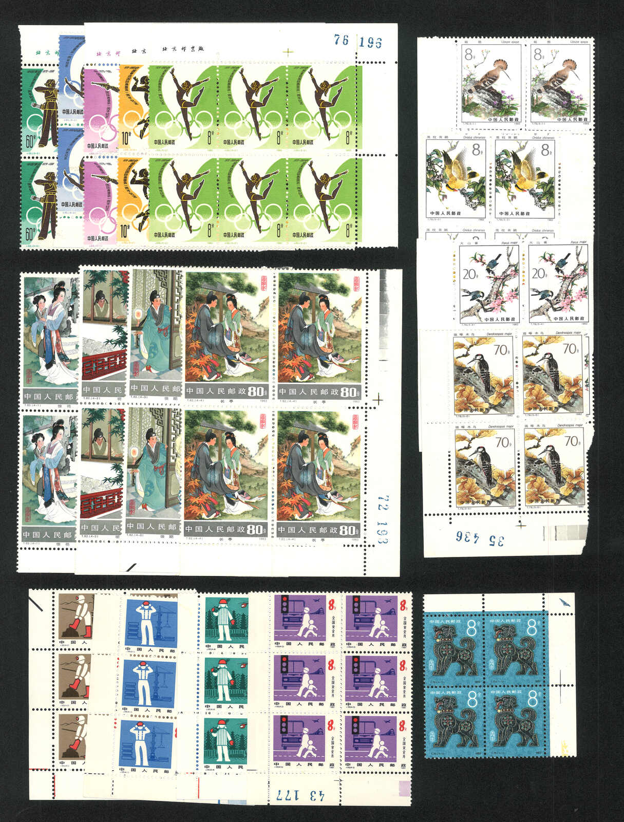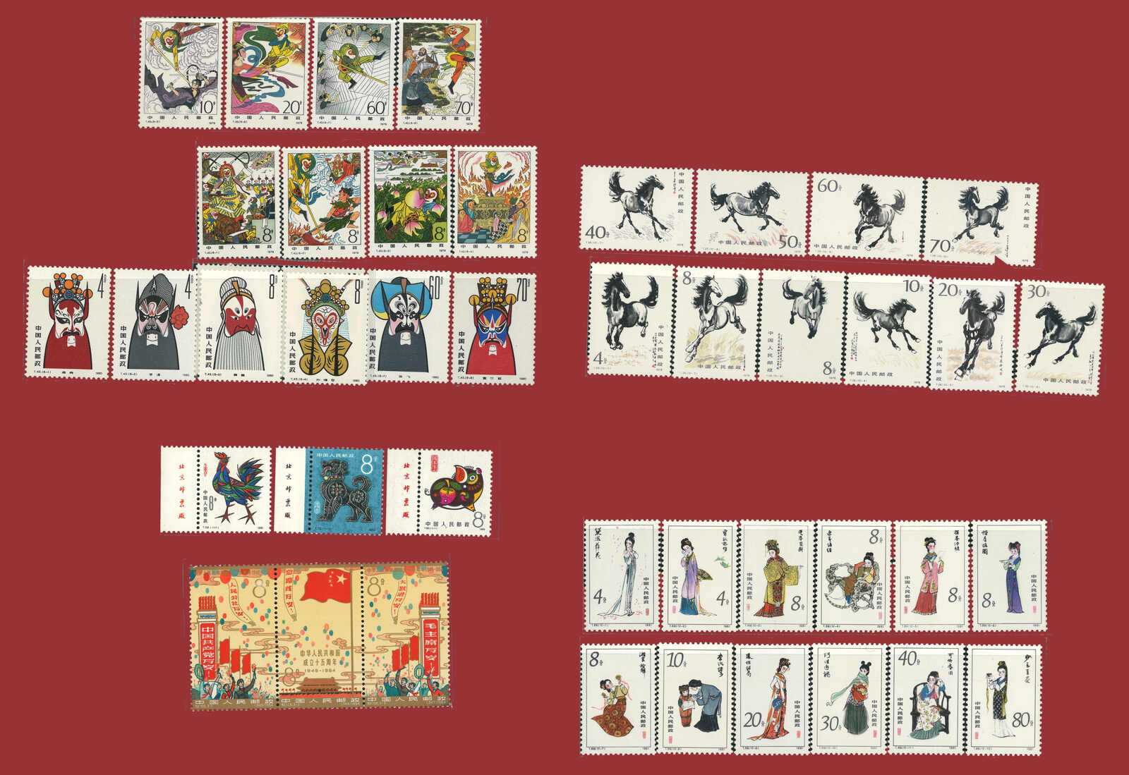 730 ** imageA group of 9 sets of C and T series issues complete sets, including C106, T28, T43, T44, T45, T58, T69, T70 and T80. All MNH with original gum. Three New Year stamps with left imprint margin.