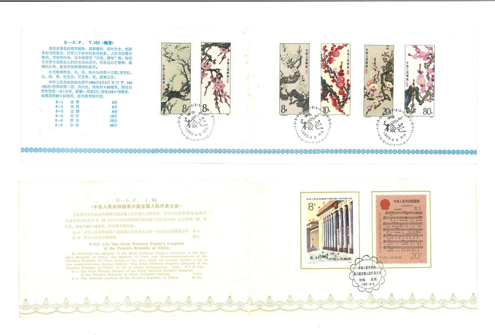 735 ** imageA group of 7 J&S series issue Beijing Stamp Co. presentation folders, including J92, J94, T81, T86, T87, T88 and T103.