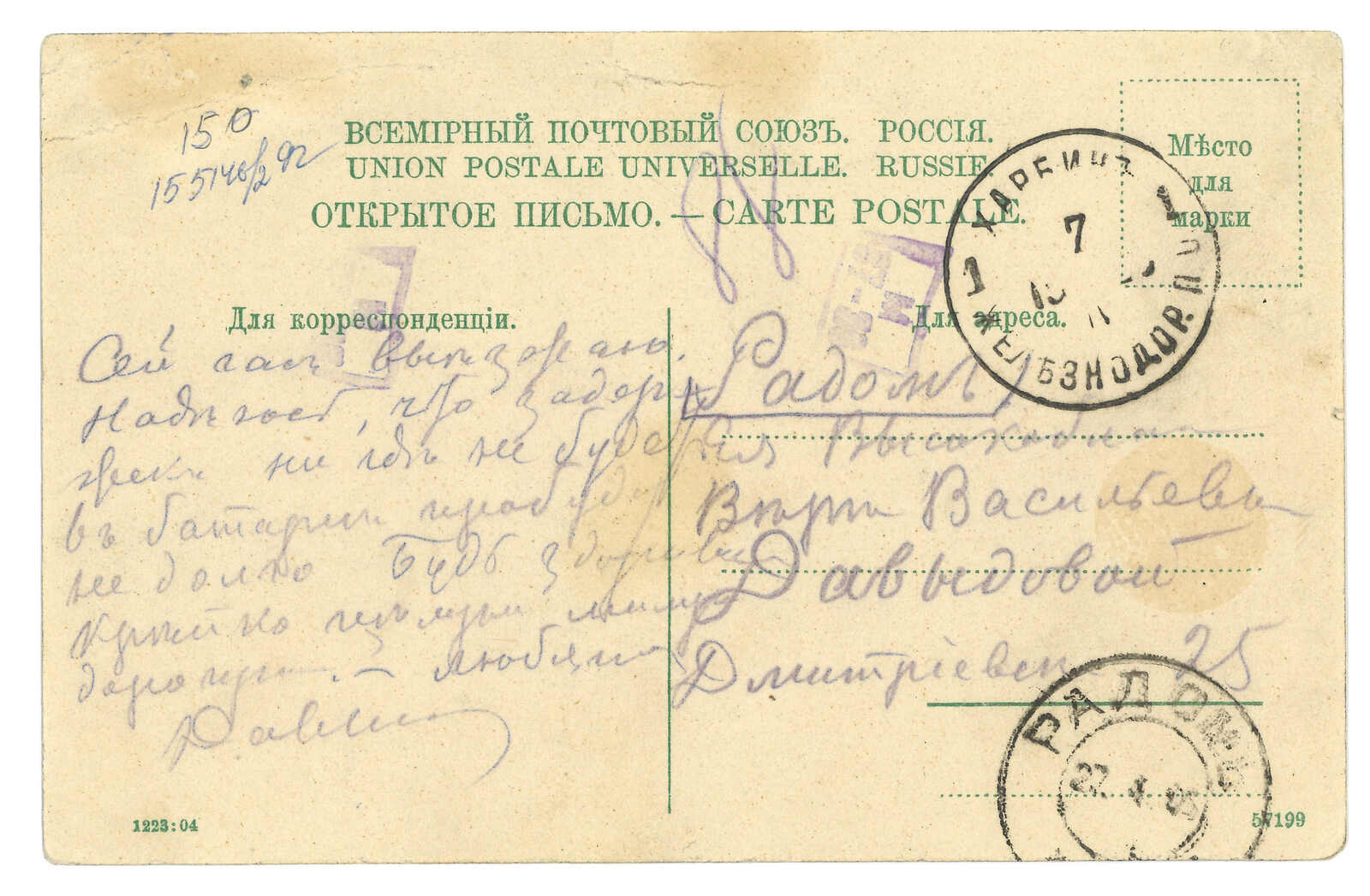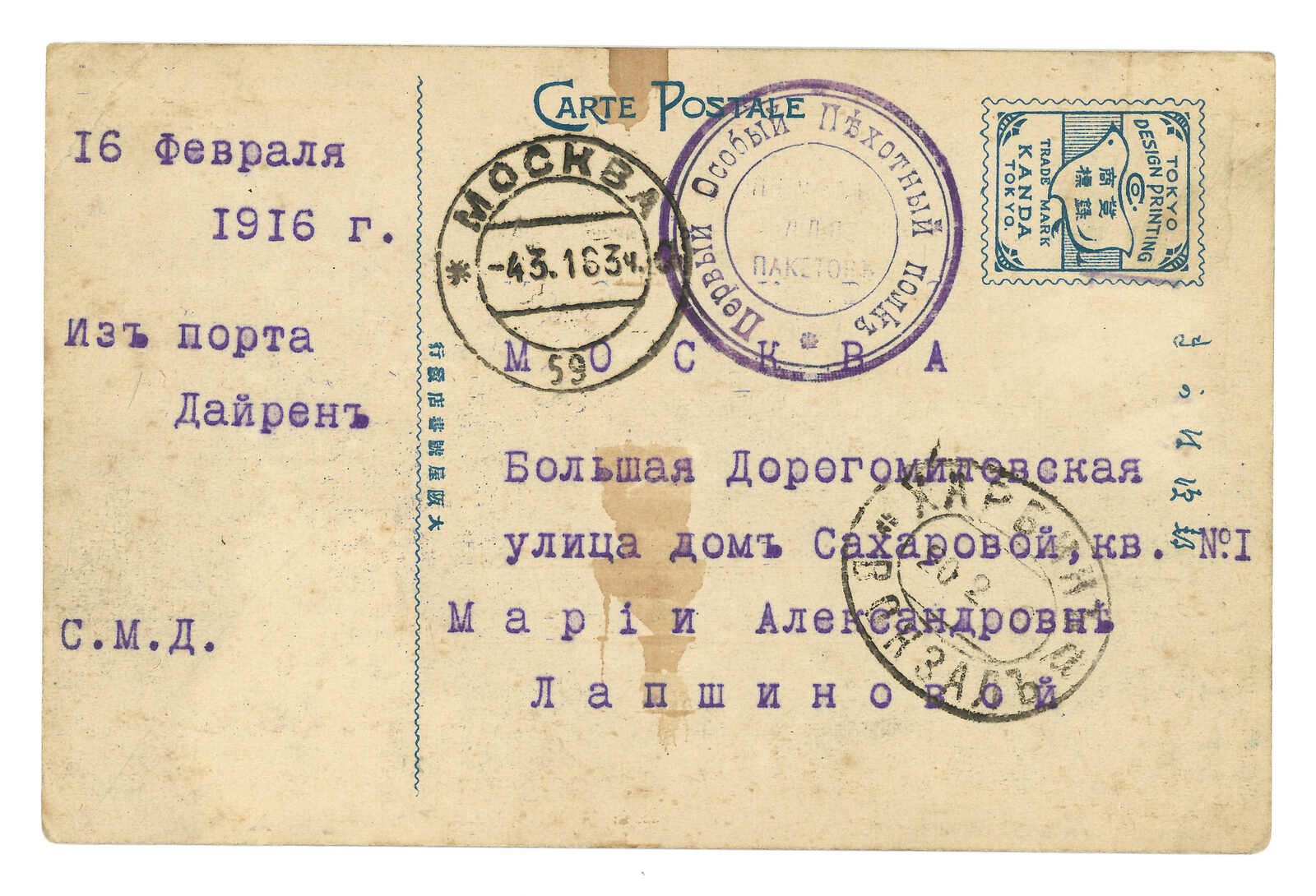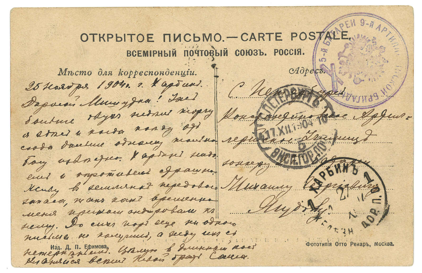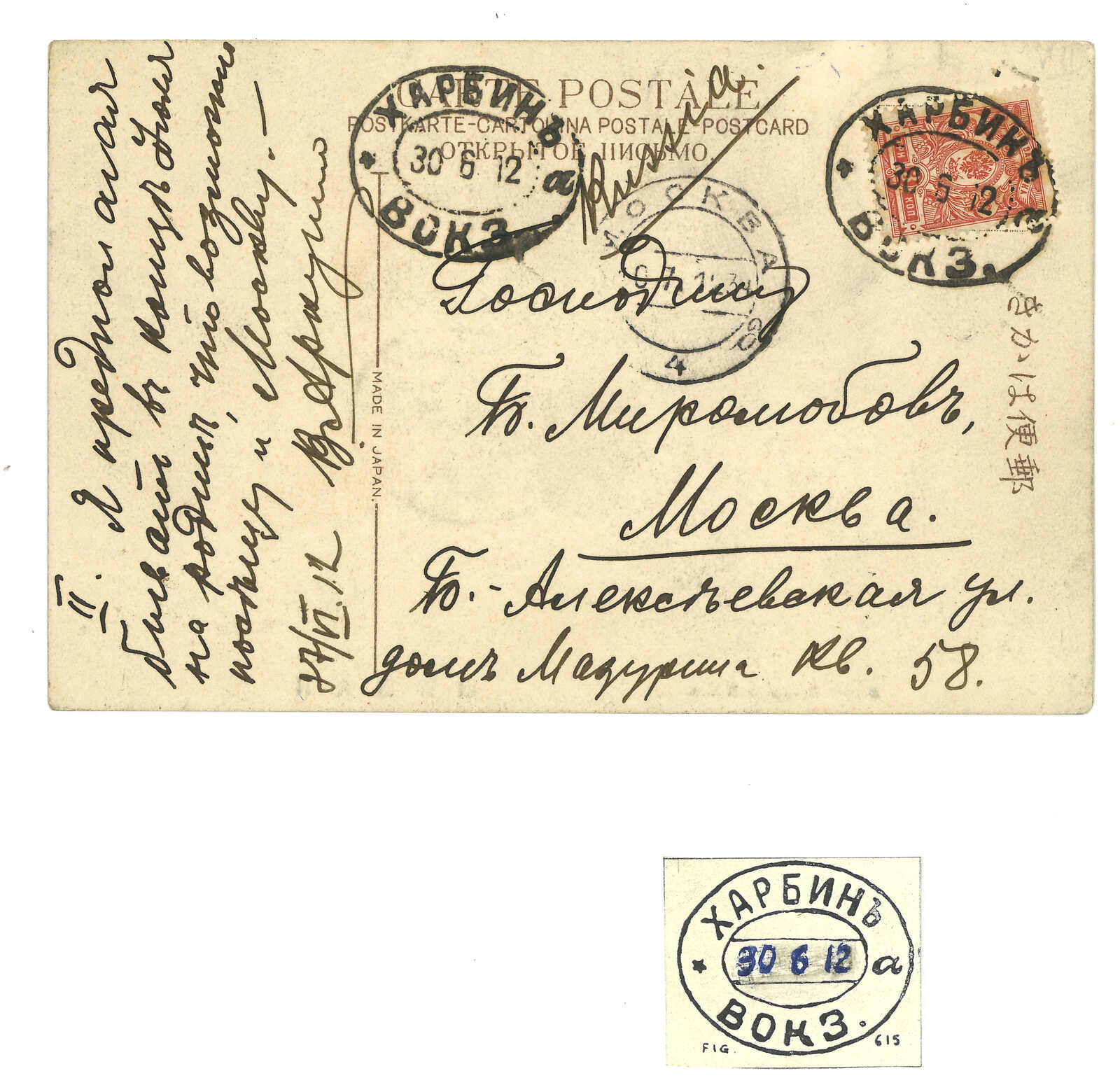 2648 cover image1904 a group of about 26 Russian military covers and postcards from Harbin Central Station, applied with T&S type 1, 2 d.s, mostly along with unit seal.