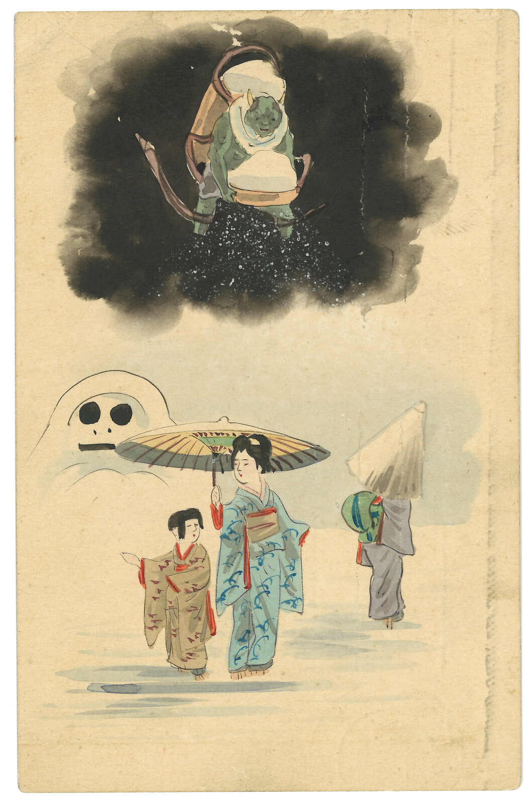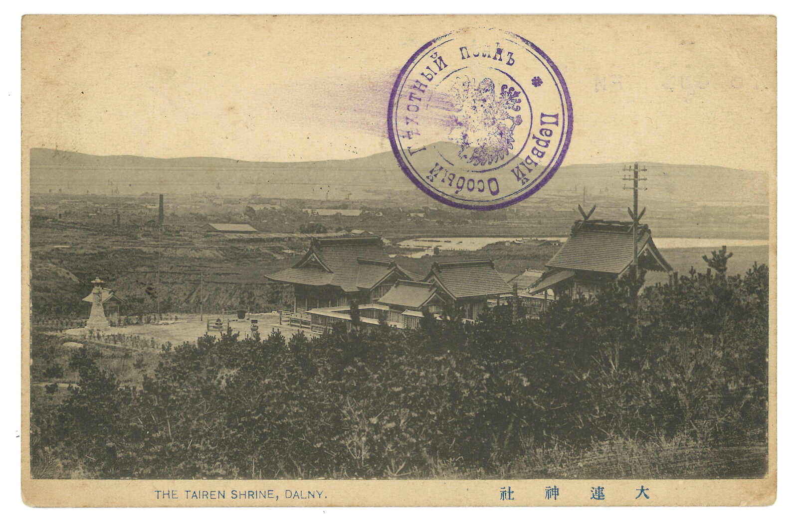 旅順鳥瞰風光兩折明信片,以膠帶修補重接,未使用。(Image 1) (Image 2)