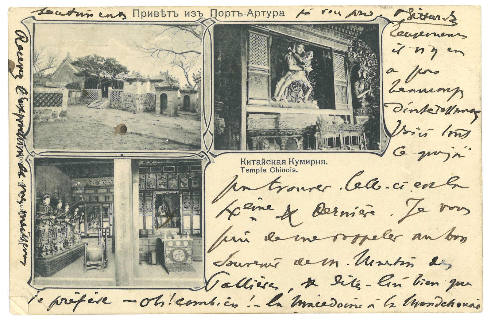 1903年一組三件由旅順俄局寄出之郵資片及明信片,銷軍徽圖票,銷第十七軍郵局日戳。經中東鐵路260線到歐洲。(Image 1) (Image 2)