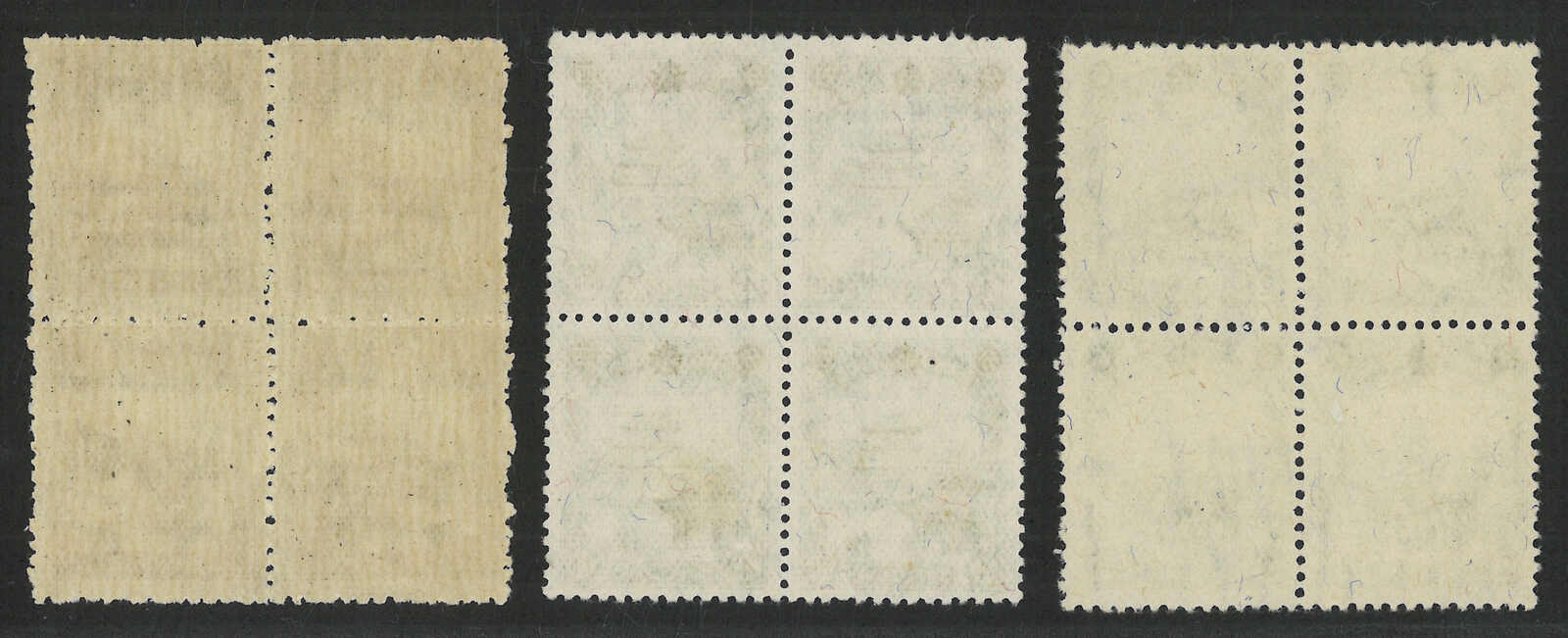 1947年中國關東郵政改值5元蓋2分、15元蓋4分及20元蓋3角滿洲國票四方連新(楊目AD28-30),無貼。(Image 1) (Image 2)