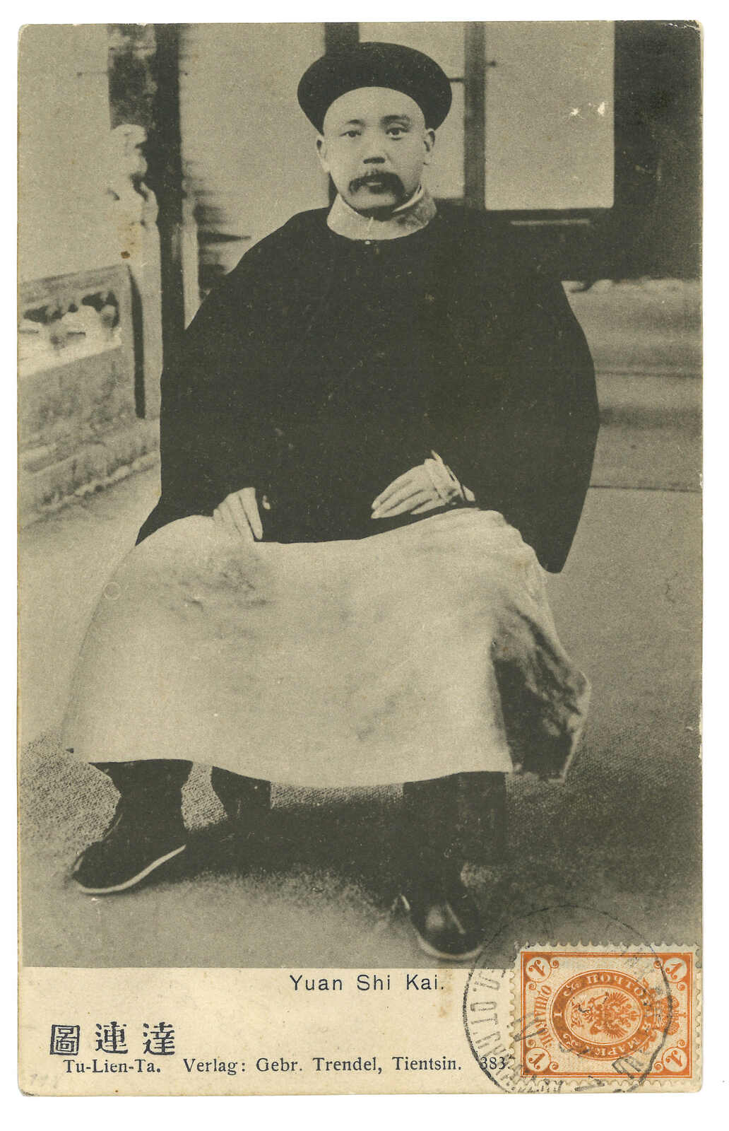 約1902年山海關寄北京。袁世凱肖像明信片,貼軍徽圖1戈比,銷極罕之山海關俄局T&S 2型日戳。此戳在T&S記錄中僅見一件蓋於無貼票封上作中轉戳的例子。寄中國國內更是少見。(Image 1)