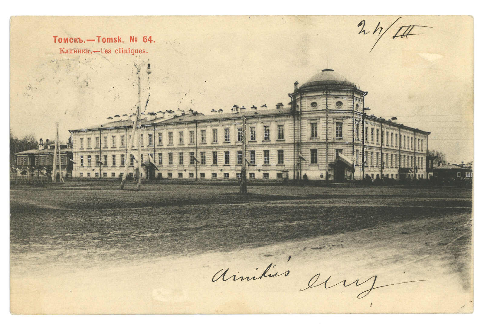 1904.10 滿洲里車站寄俄國。圖片明信片,無貼票,鈐難得之滿洲里車站T&S 1型日戳及“第五十五步兵團第十三連”圓戳。11.12抵聖彼得堡。Valentin Levandovskiy記錄滿洲里車站1型日戳之最晚日期為1904年9月30日,此例更晚。(Image 1)