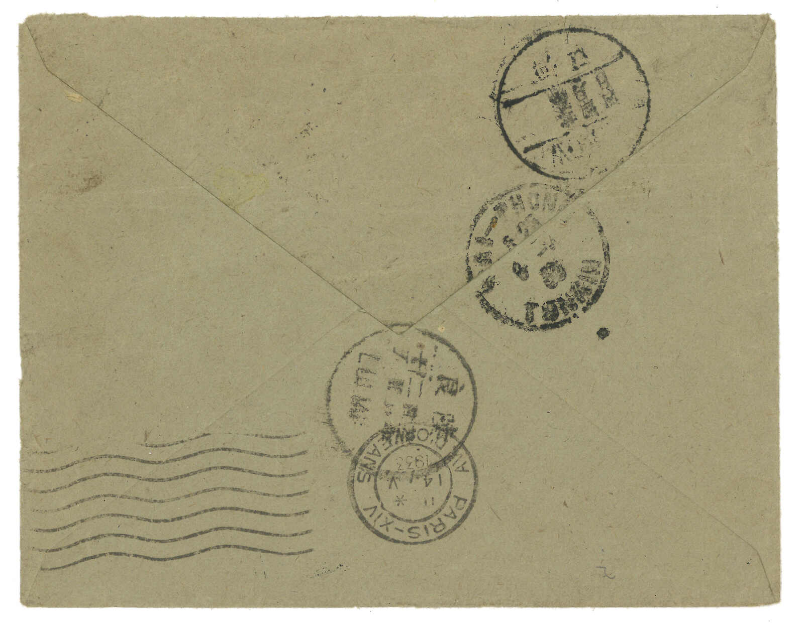 3405 cover image1936 Yenyuanchang (26 Apr) to France, f.w. Martyrs ovpt. Limited For Use in Szechuan 20c, tied by scarce Yunnan Yenyuanchang cds. Transit Sichang (29 Apr), Hweili (4 May), Kunming (11 May), Hokow (13 May), Haiphong (15 May). Arrived France (19 Jun). Paying old postage rate 20c instead of correct 25c, probably because Yenyangchang is remote. Illustration 20, p. 16 in “The Development of Yunnan Post System 1901-1949” by Mah Lang Moe.
