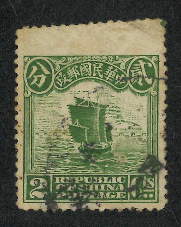 307 o image1914-1919 Peking 1st print Junk 2c, with top perf shifted variety (Chan 230 var), tied by Chinese circular d.s.