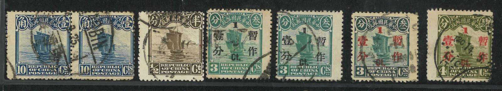 一組七枚帆船齒孔變異票,均信銷。(Image 1) (Image 2)