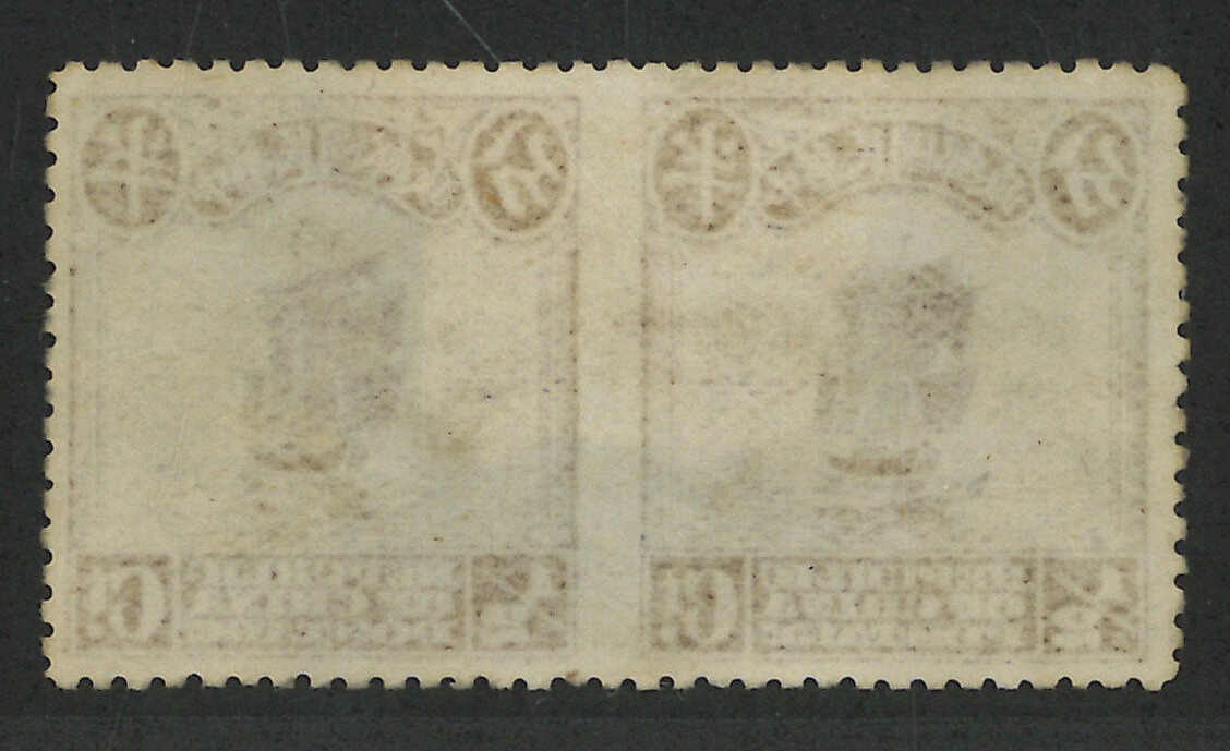 1913年倫敦版帆船1分橫雙連新,帶中縫漏齒變異(陳目209b),原膠無貼。(Image 1) (Image 2)