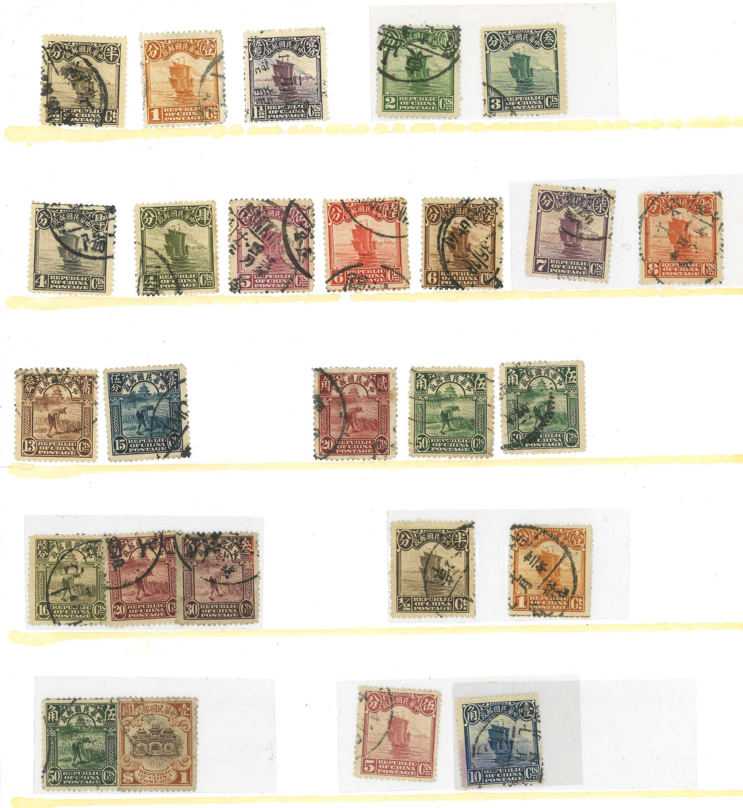 1923至1933年一組30枚北京二版帆船舊票,包含難得之20元。(Image 1) (Image 2) (Image 3)