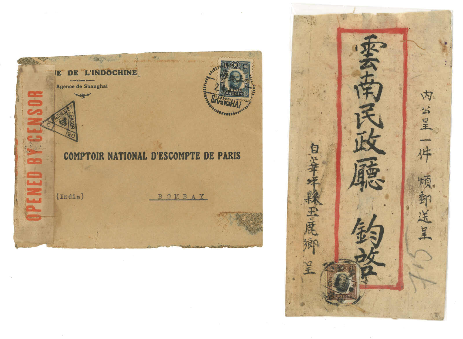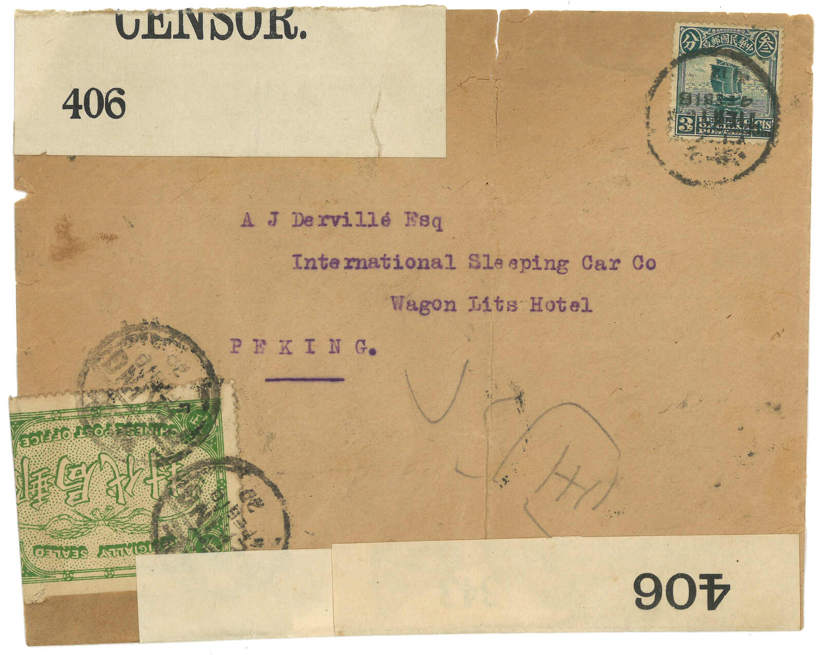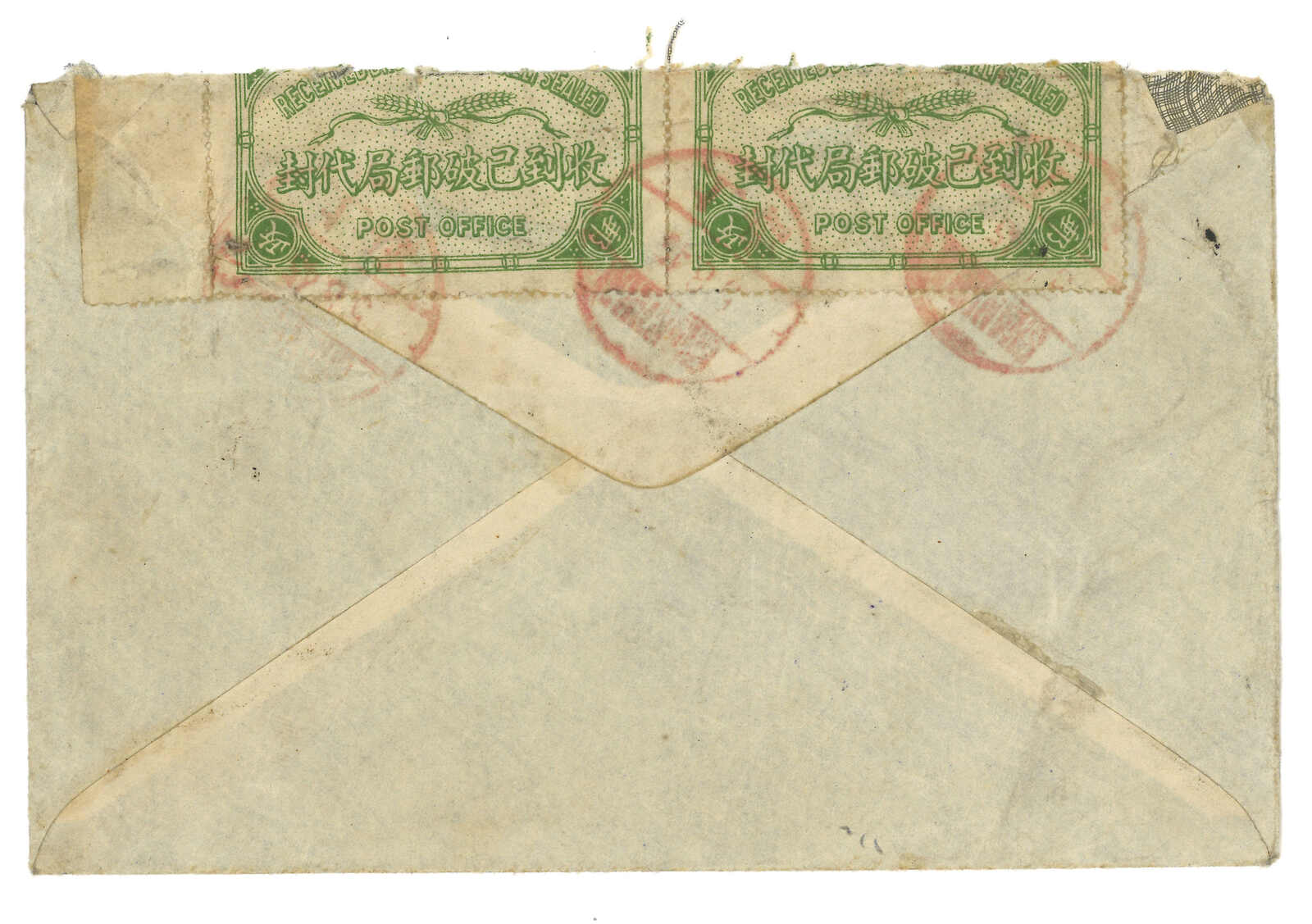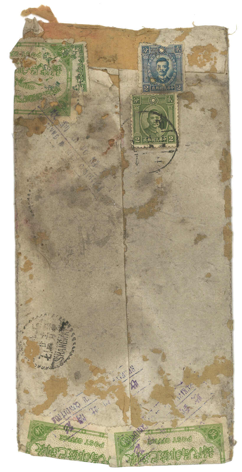 and Chinese definitive stamps makes it an exceptional piece of inter-postal and military history plus manuscript instructional marking.