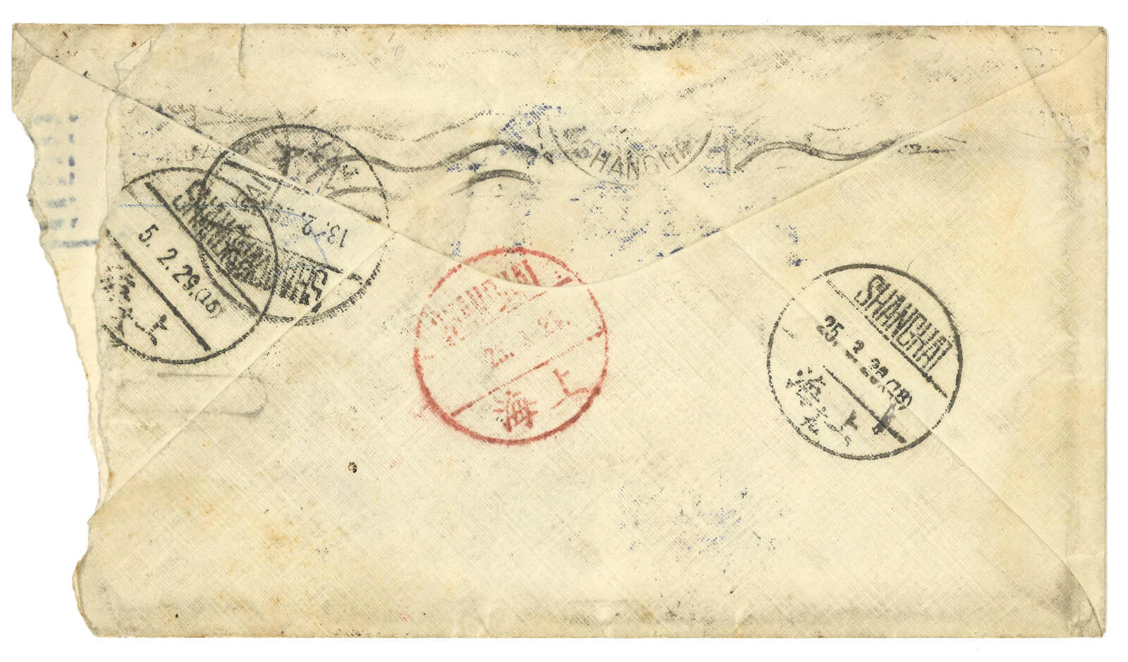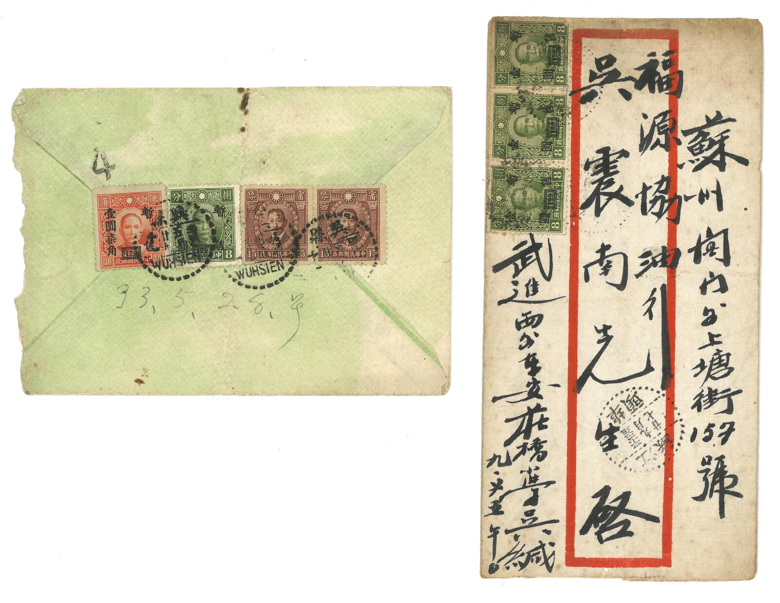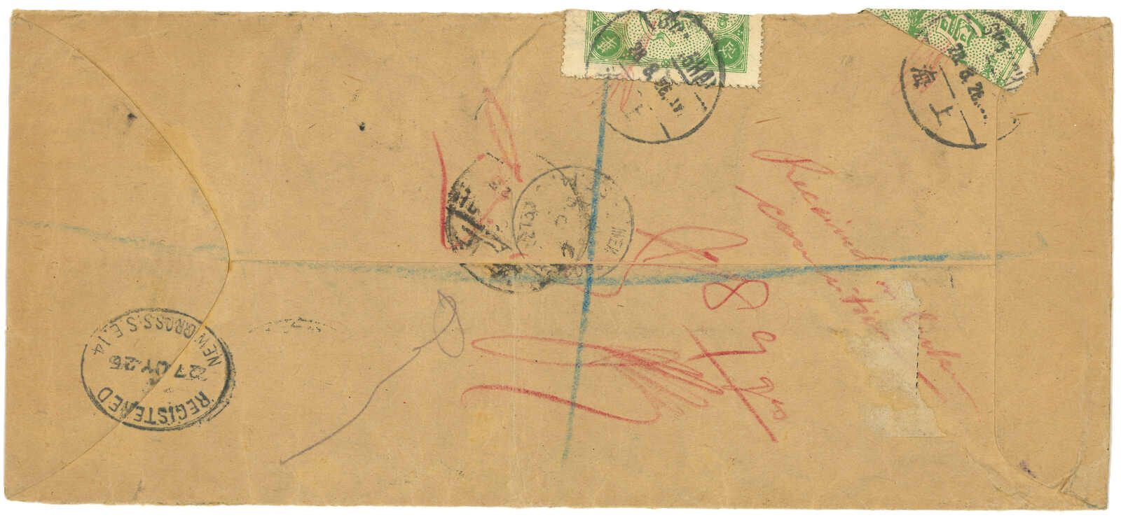 and Chinese definitive stamps makes it an exceptional piece of inter-postal and military history plus manuscript instructional marking.