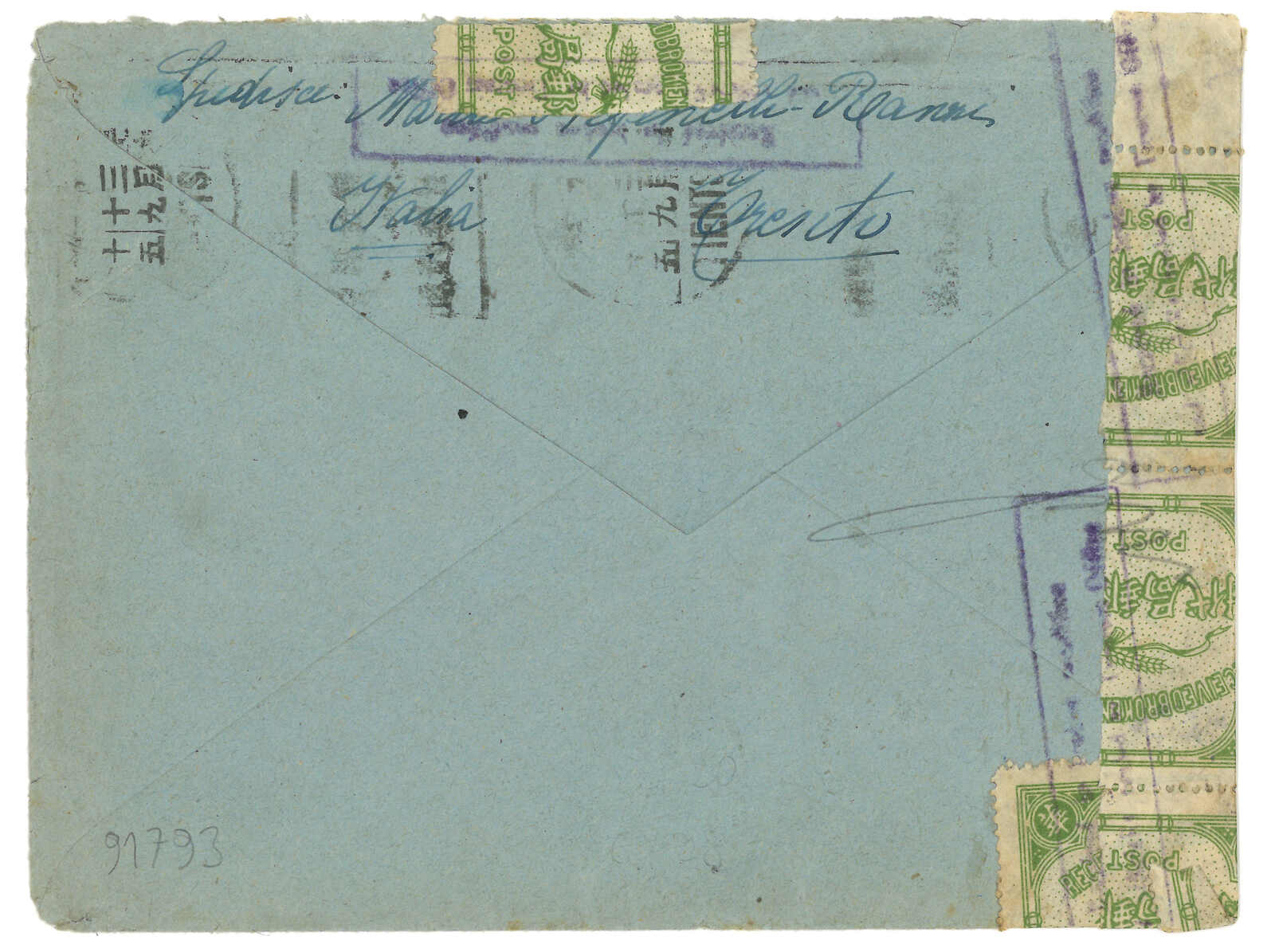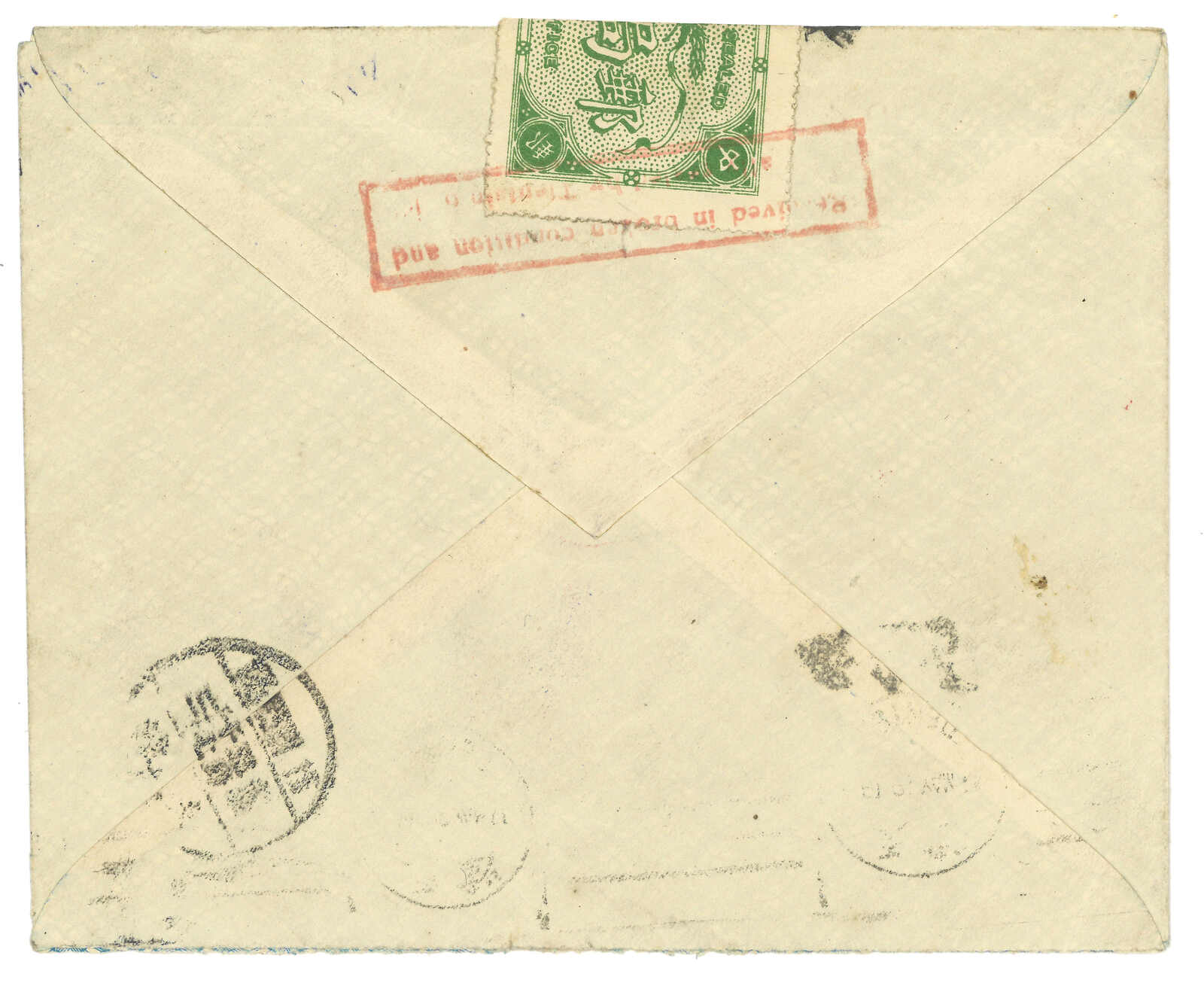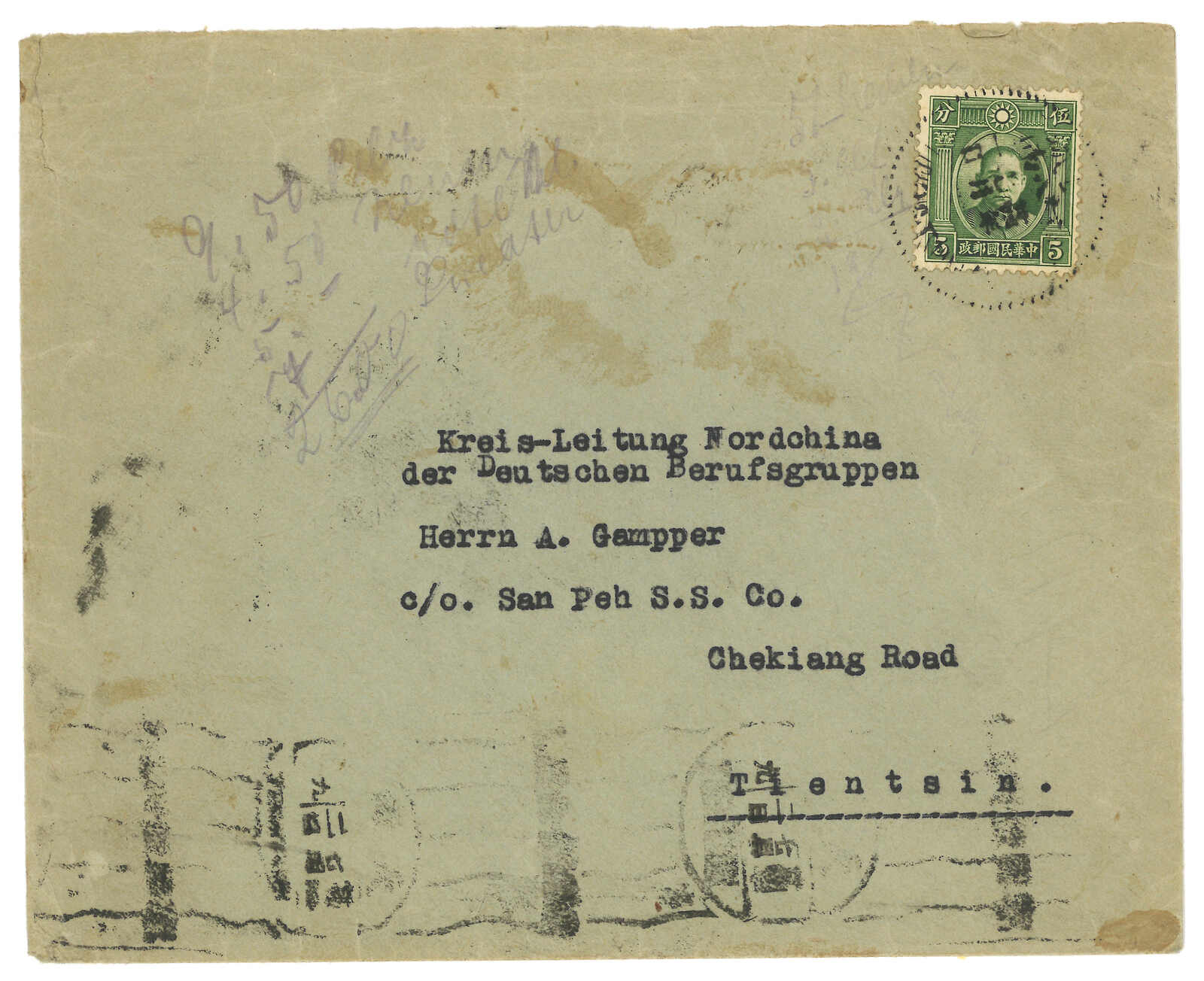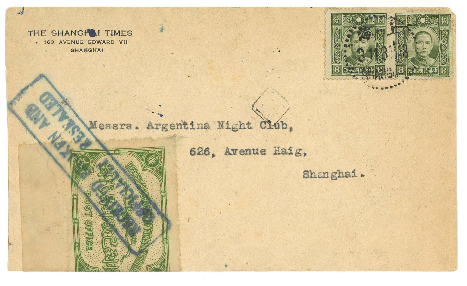 and Chinese definitive stamps makes it an exceptional piece of inter-postal and military history plus manuscript instructional marking.
