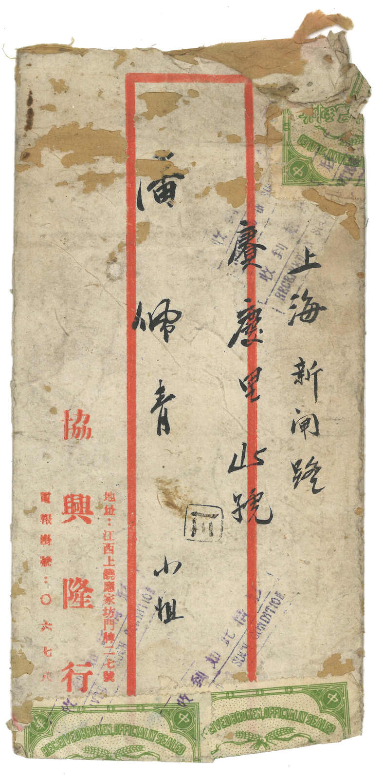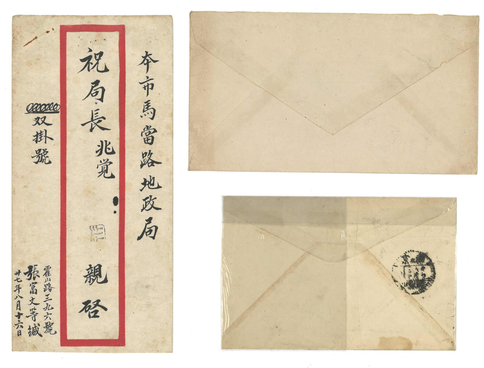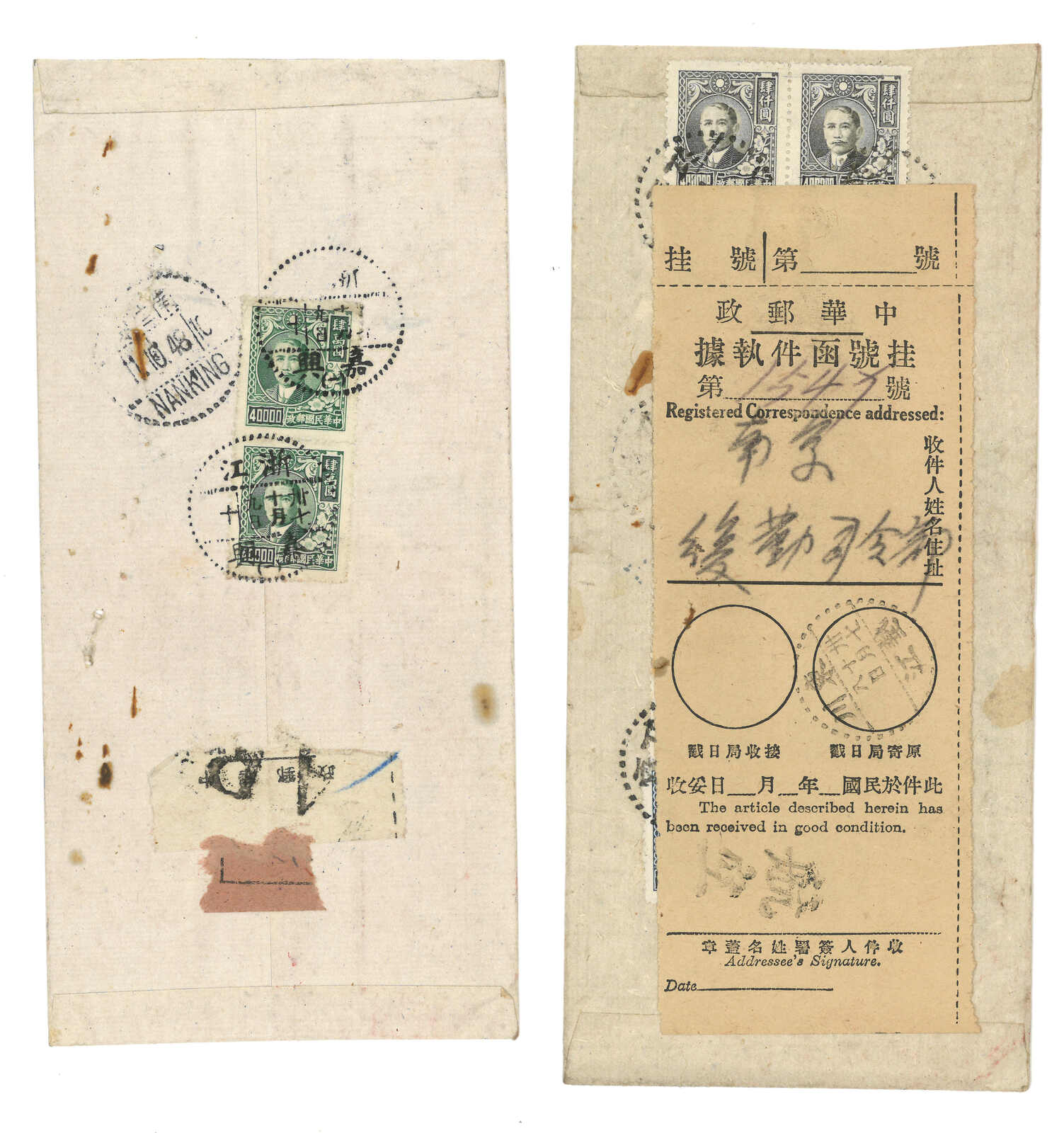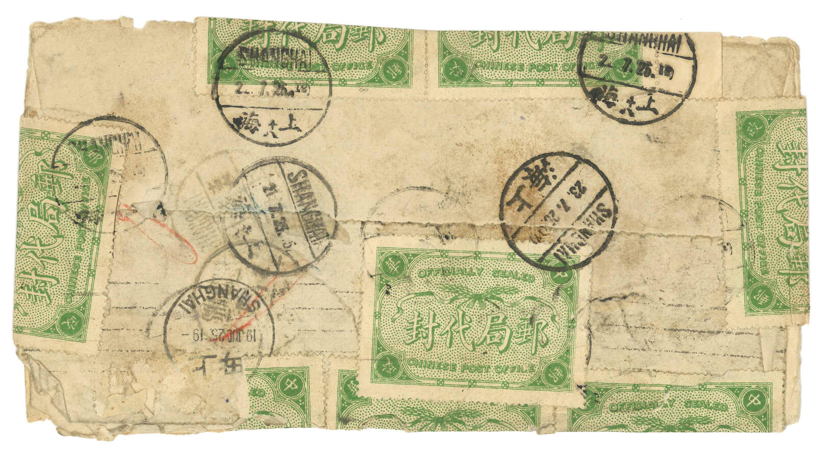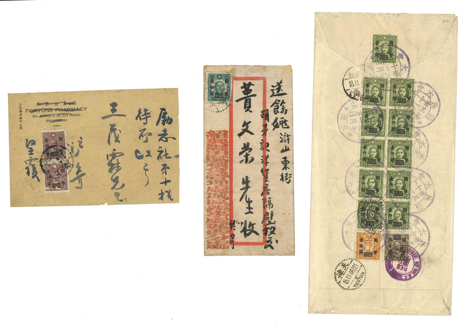 一組約25件民國時期破損重封信封,展示了於不同情況下使用之代封票及戳記,十分豐富吸引。(Image 1)