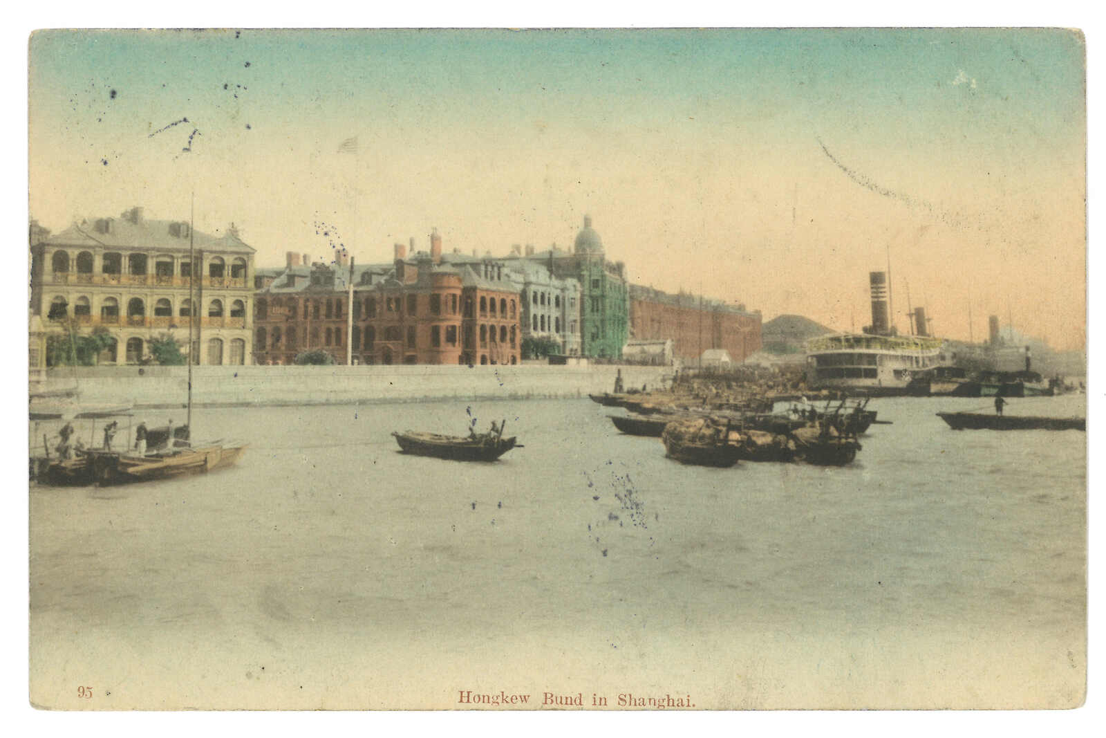 欠資圖片明信片自上海寄日本,貼帆船半分,銷上海腰框英漢日戳,另見T章。寄日本之明信片郵資為1分5厘。(Image 1)