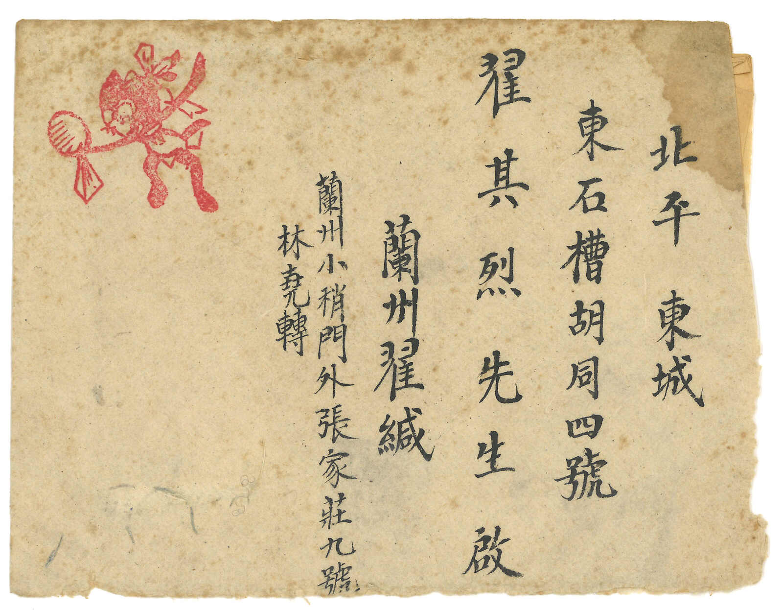 約1942年蘭州寄北京,背貼陝西劃線改值伍角,銷蘭州三格點線日戳。6.26抵北京。陝西劃線伍角異地使用例子。封右側打開。(Image 1)