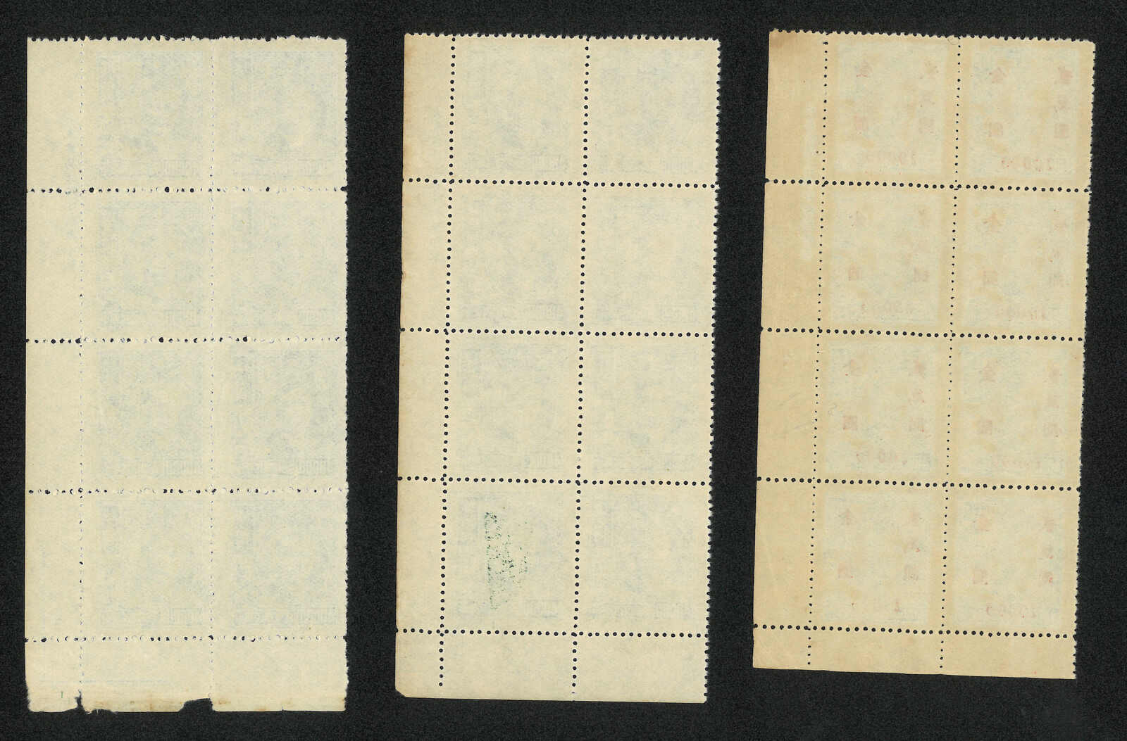 1948 Shanghai Dah Tung 3rd Print SYS $50,000, $200,000 and $3,000,000 in 4 blocks of 8, all with bottom right corner imprint margin. MNH.