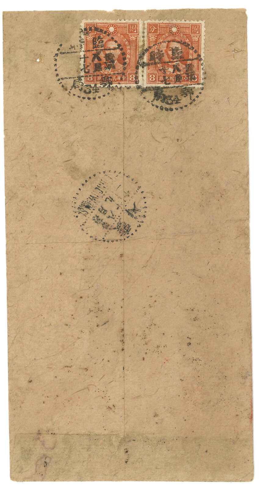 1942 (17 Aug) Military cover to Lingchuan, f.w. Martyrs 8c in pair on reverse, tied by Temporary PO No. 34 cds. Arrived Lingchuan (19 Aug).