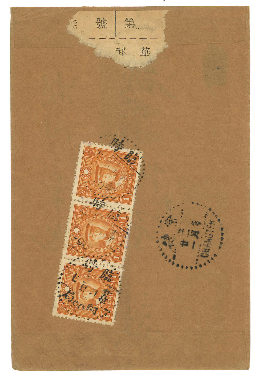 1940 (3 Jan) Military cover to Changteh, f.w. Martyrs 1c in strip of 3 + SYS 5c x2, tied by Temporary PO No. 90 cds. Arrived Changteh (21 Feb).