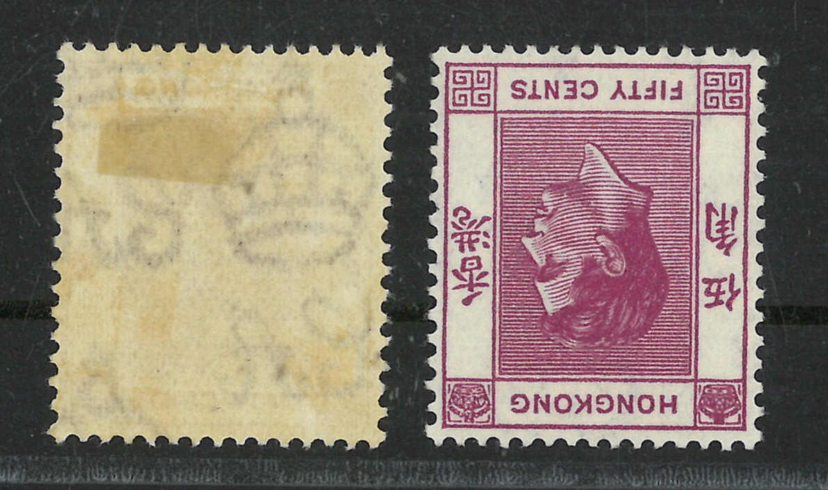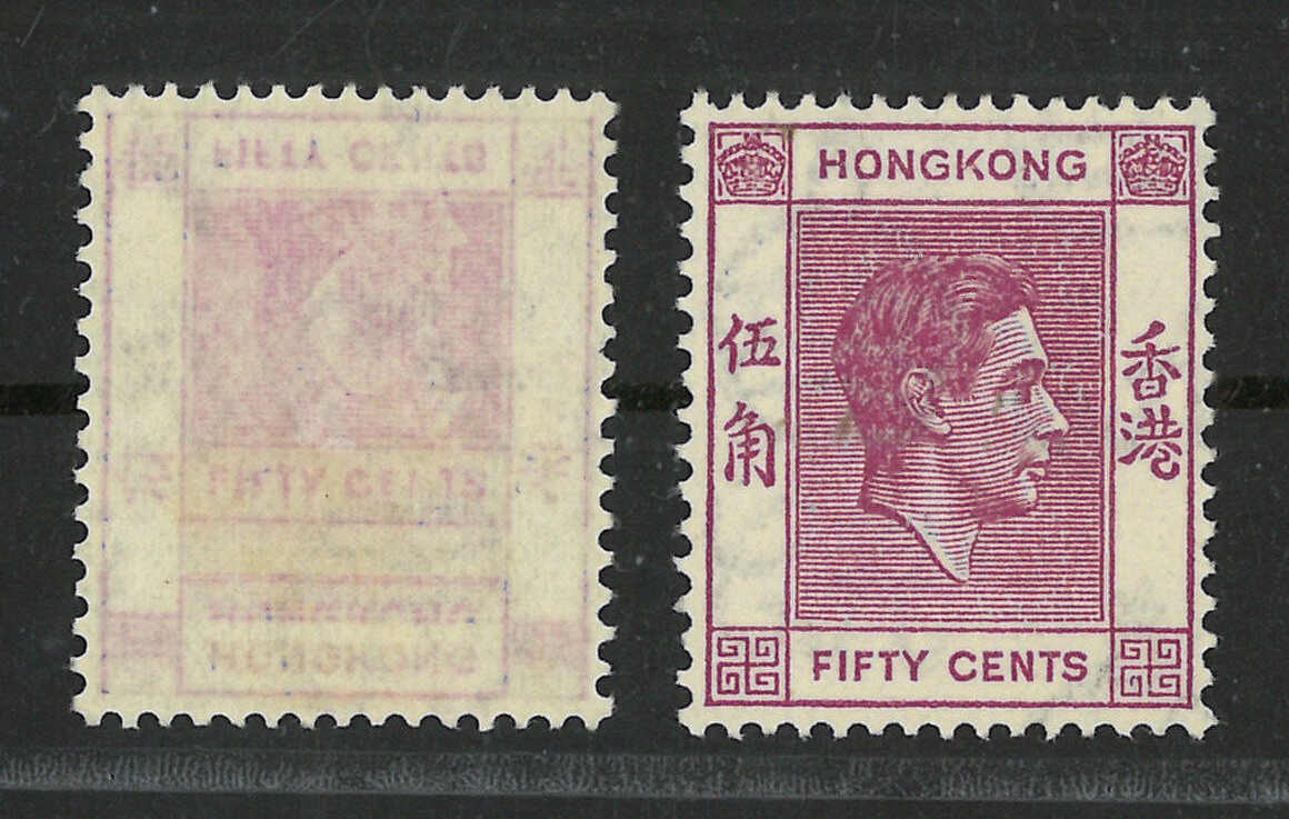 1637 ** image1938-1946 Hong Kong KGVI 50c, with off-set variety. Plus a normal stamp for reference.