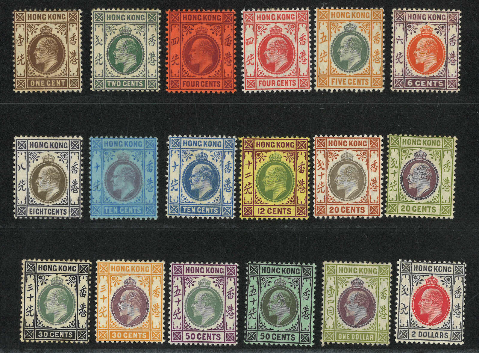 1608 * image1903 Hong Kong KEVII 1st issue wmk crown CA set from 1c to $2 (Yang 61-72), MH.