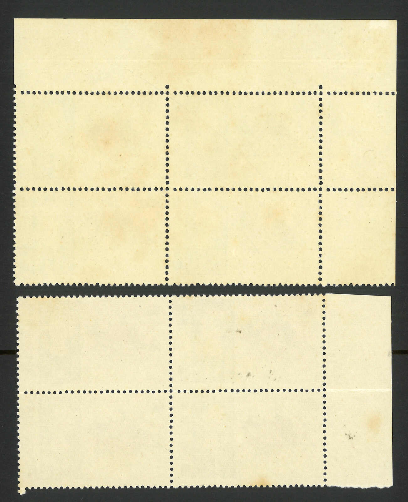 1968年海上交通工具1元四方連新,帶有黑色套印複印變異(楊目C53a),另附一件正常四方連作對比。“戳王”劉國華舊藏。(Image 1) (Image 2)