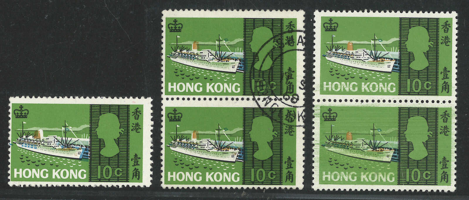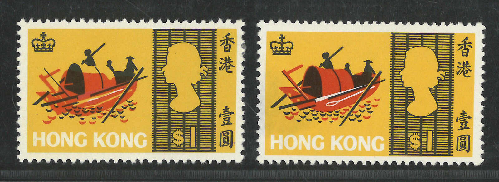 1679 ** image1968 Sea Craft $1 single and block of 4, with black colour shifted variety (Yang C53 var), plus a normal single for reference. All MNH. Ex- Lau Kwok Wah (known as “Chopking”).