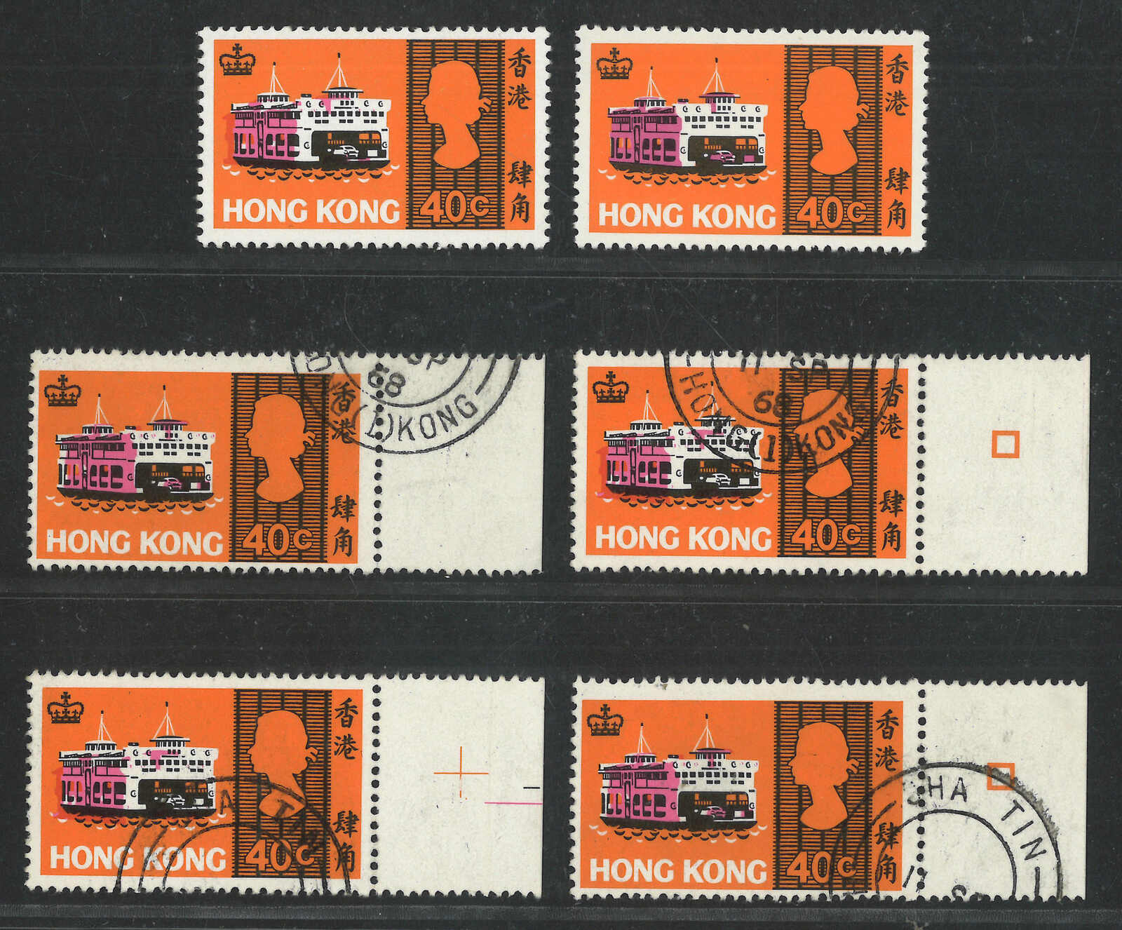 1680 o image1968 Sea Craft 40c with purple colour shifted variety x5 (Yang C51) in which 4 with margin and used while 1 mint. Plus a normal stamp for reference. Ex- Lau Kwok Wah (known as “Chopking”).