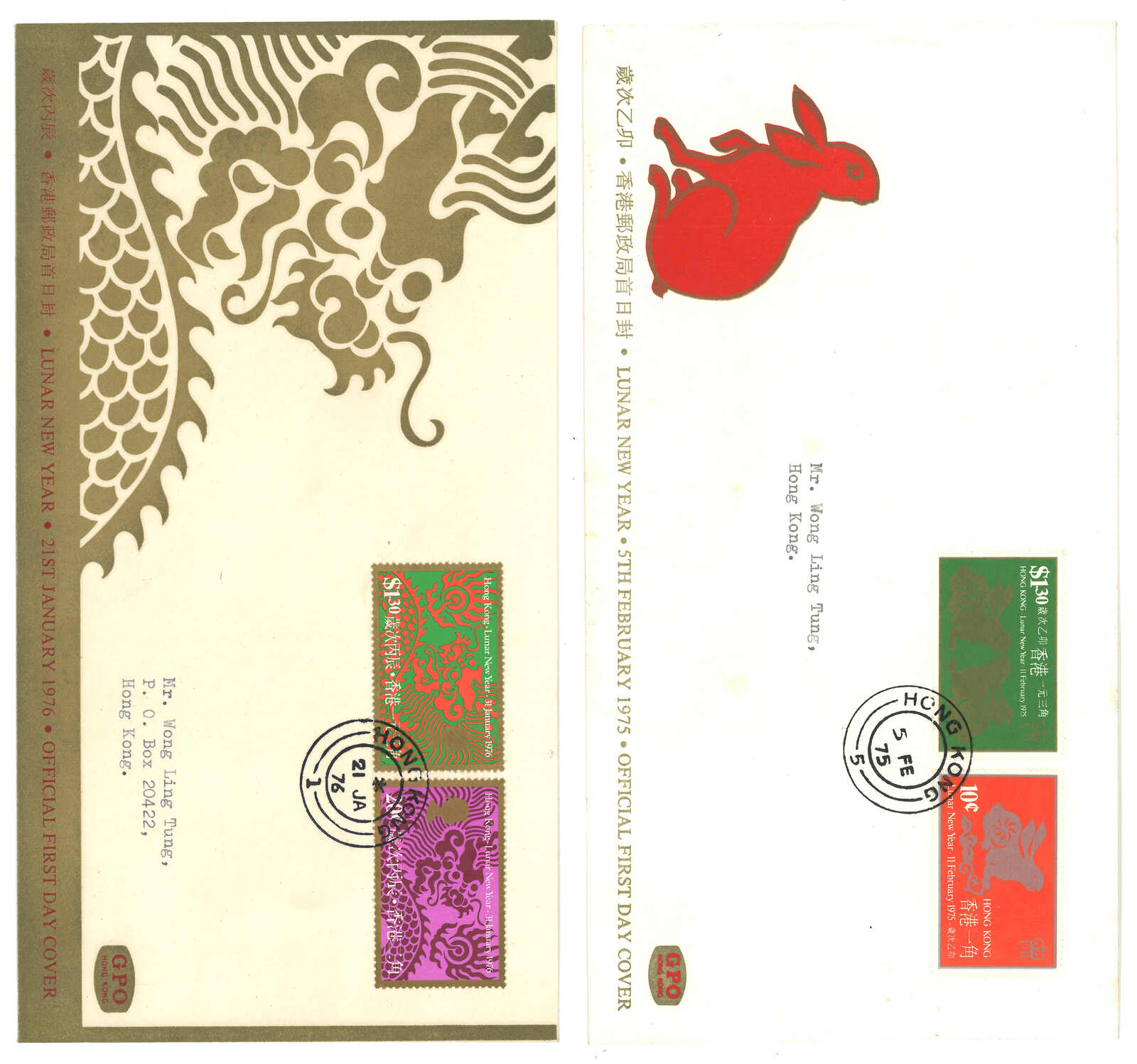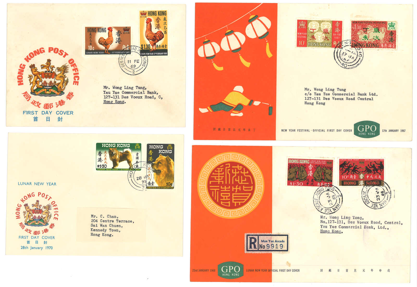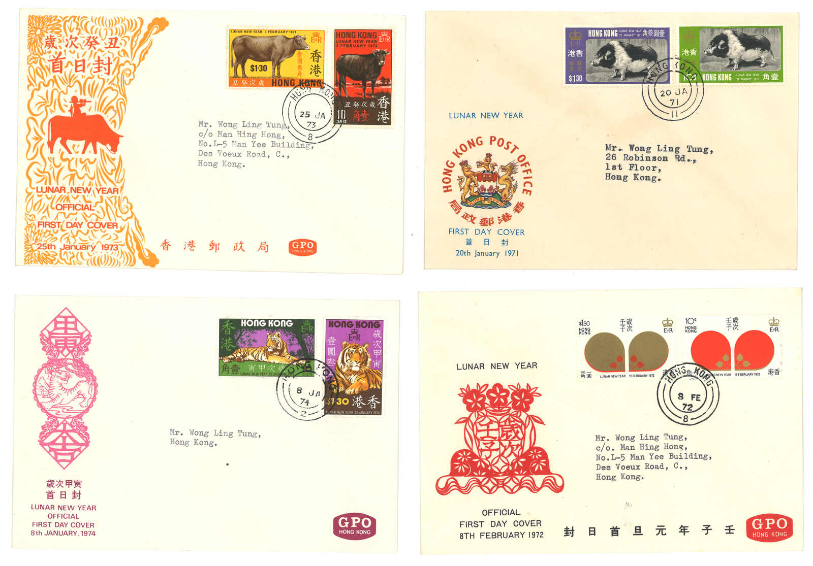 1704 cover image1967-1978 Hong Kong first round lunar year stamp FDC from year of ram to horse.