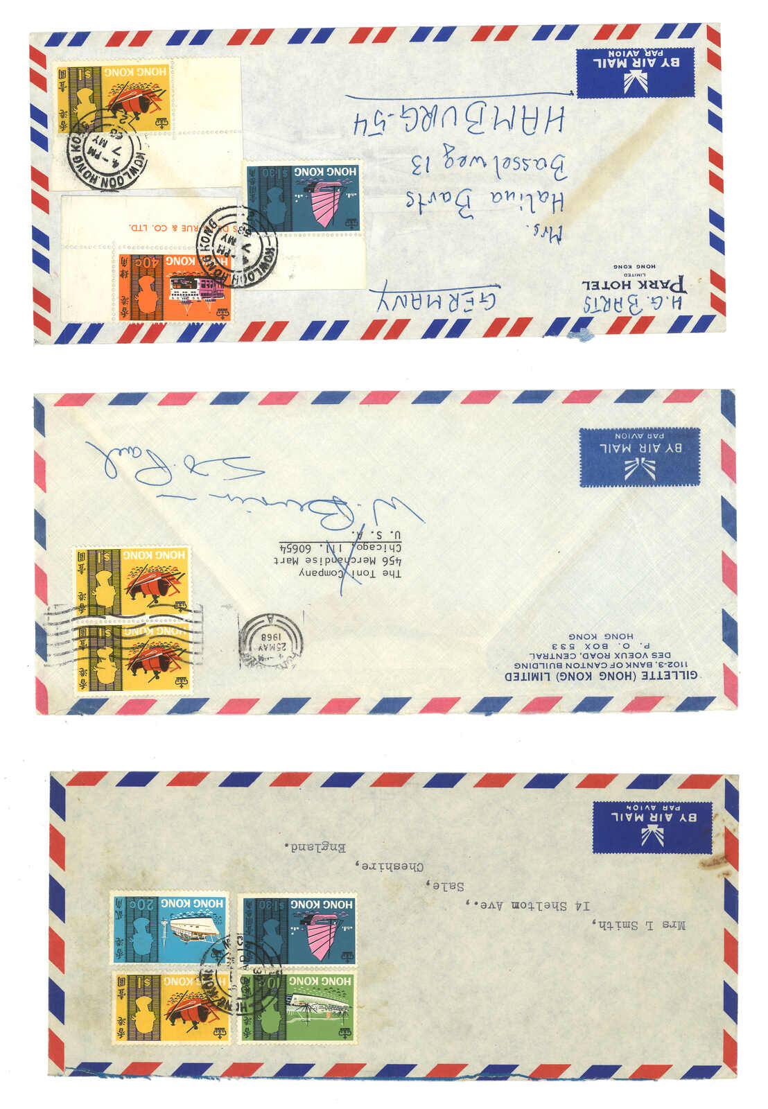 1960年代一組約15件貼用海上交通工具票之信封,當中一件為首日封,銷不同日戳。(Image 1) (Image 2) (Image 3) (Image 4) (Image 5) (Image 6) (Image 7)