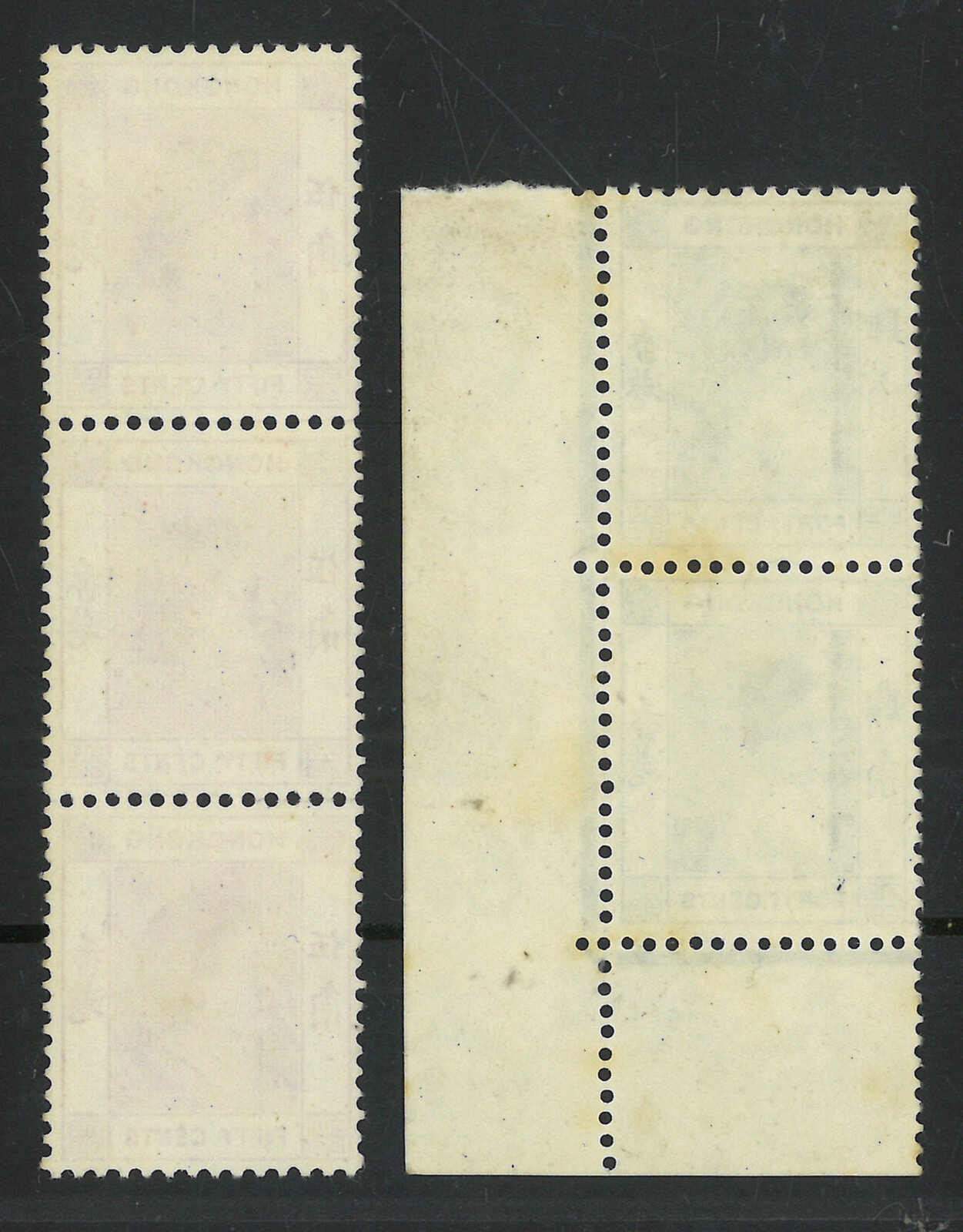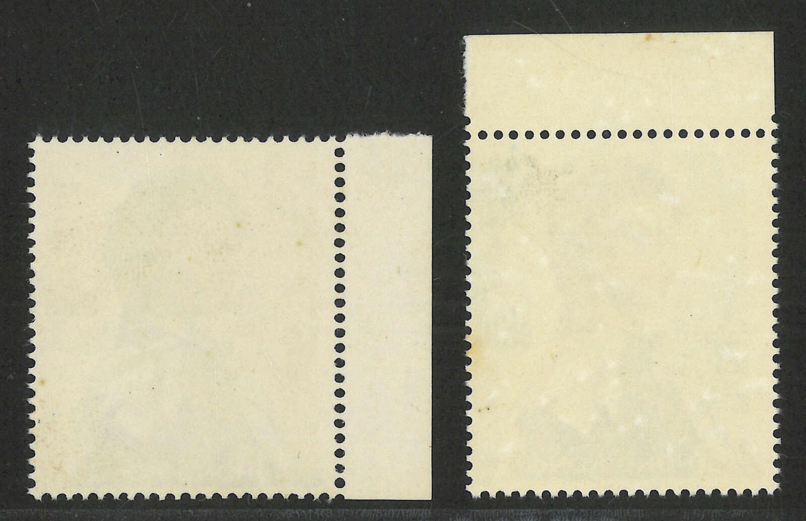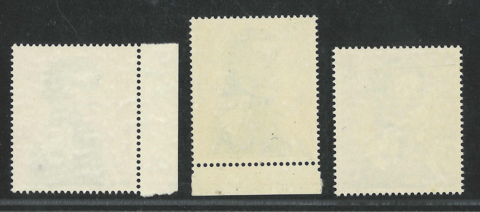 1954年香港伊麗沙白二世第一組5分及5角方連三件,均帶明顯齒孔變異(楊目169、176),均為新。(Image 1)